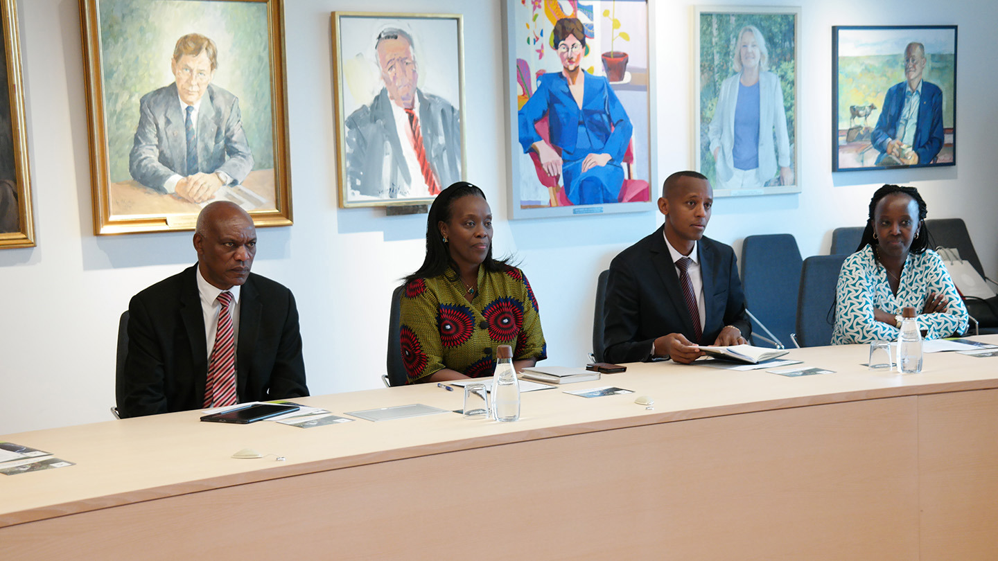 Foto: Från vänster: Professor Alexandre Lyambabaje rektor vid University of Rwanda, Dr. Diane Gashumba, Rwandas Nordenambassadör, Etienne Ruvebana, huvudkoordinator för Rwanda-Sverige programmet, och Aline Umubyeyi, Deputy koordinator för programmet.