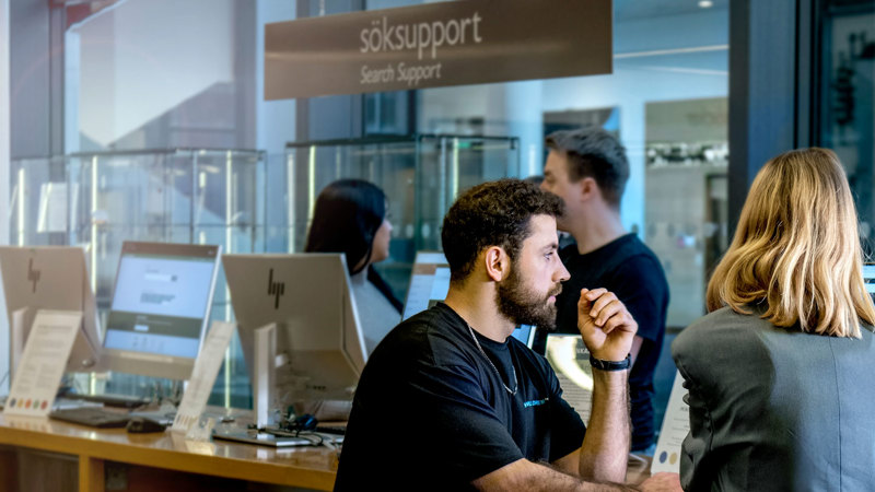 Biblioteket har utvecklat sökguider genom vilka studenter kan lära sig grunderna i informationssökning.