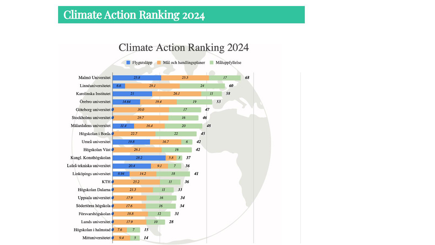 On a positive note, the university has set goals to reduce business air travel. In the ranking, the university received points for setting a goal to reduce carbon dioxide emissions by 50 percent by 2030, a goal also set by Lund University and KTH.