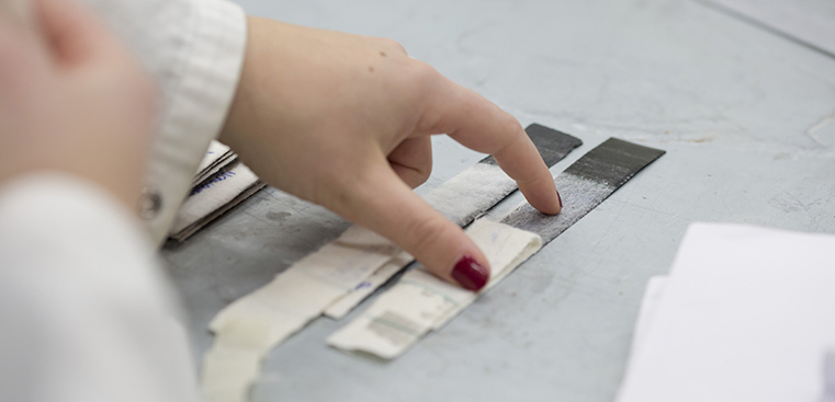 “Today, in medical care, electrodes are attached with a conductive gel, but this can be irritating to the skin. Therefore, new solutions are interesting,” she explains, and continues, “I have investigated various polymeric mixtures, tested their strength and how they attach to different textile materials. For this, I have used the 3D printer to print various blends of plastic on different textiles and then examined how flexible and durable the material is.”