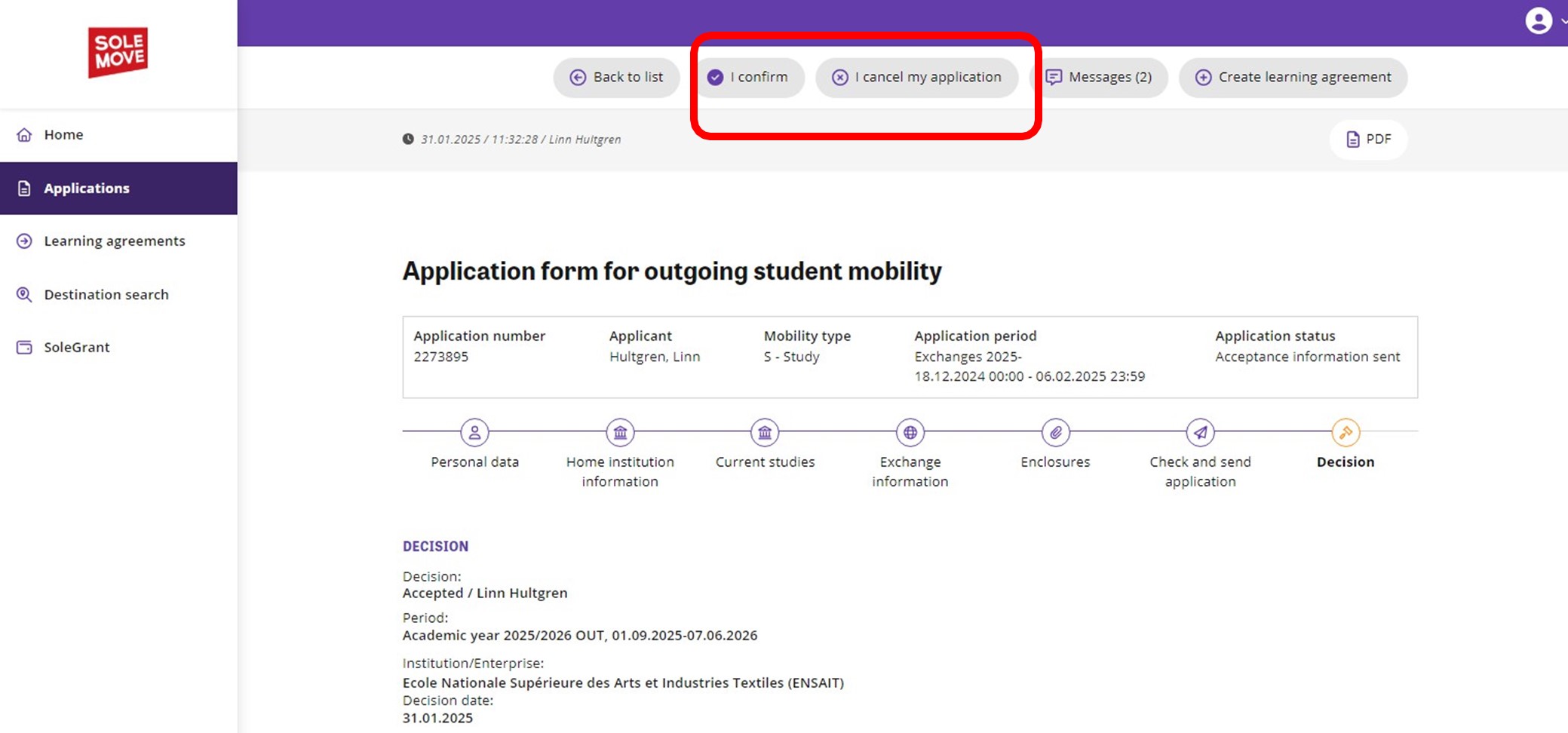 If you accept the offer, we will proceed with nominating you to the partner university for exchange studies. Thereafter, provided the nomination is successful, the application process will begin. Please note that the receiving institution has the final decision on admission, and we cannot guarantee acceptance.