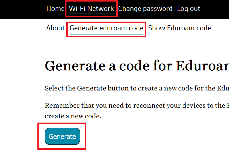 Since May 1, 2019, you need to create a separate Eduroam code for the service in the Self Service Portal. When changing your password, you may need to go into the network settings and choose to forget the network to log in with your new credentials.