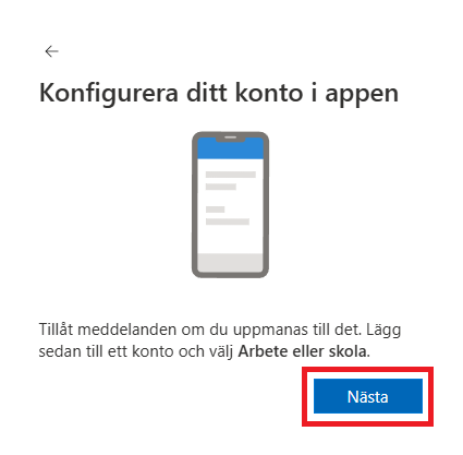 - Install the Microsoft Authenticator app on your mobile phone. If you have already done so, click “Nästa”