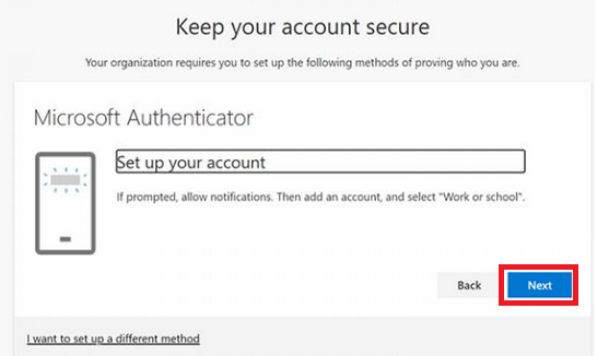- If prompted to allow notifications from the Microsoft Authenticator app on your phone, you need to allow that. Click Next on your computer.
