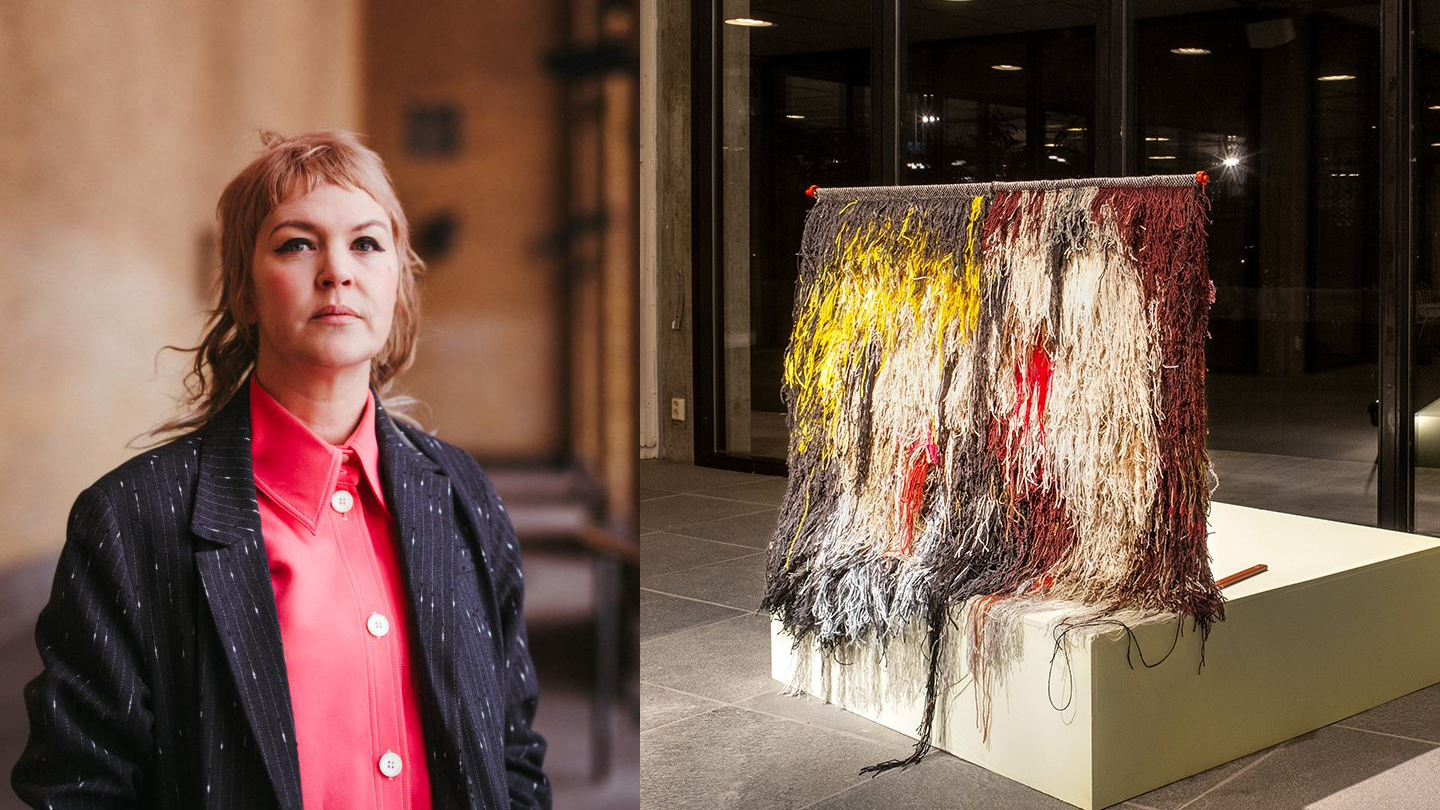 As a textile artist, Emelie challenges tradition by showcasing new aspects of rya, creating depth and duality in her works, which can be viewed from both sides to tell a deeper story. Her large, woven pieces can be unclear at first, but they reveal themselves upon closer examination. Her works ask viewers to slow down and look closely. Instead of trimming the excess threads, she intentionally lets them hang, where they appear to be “crying.”