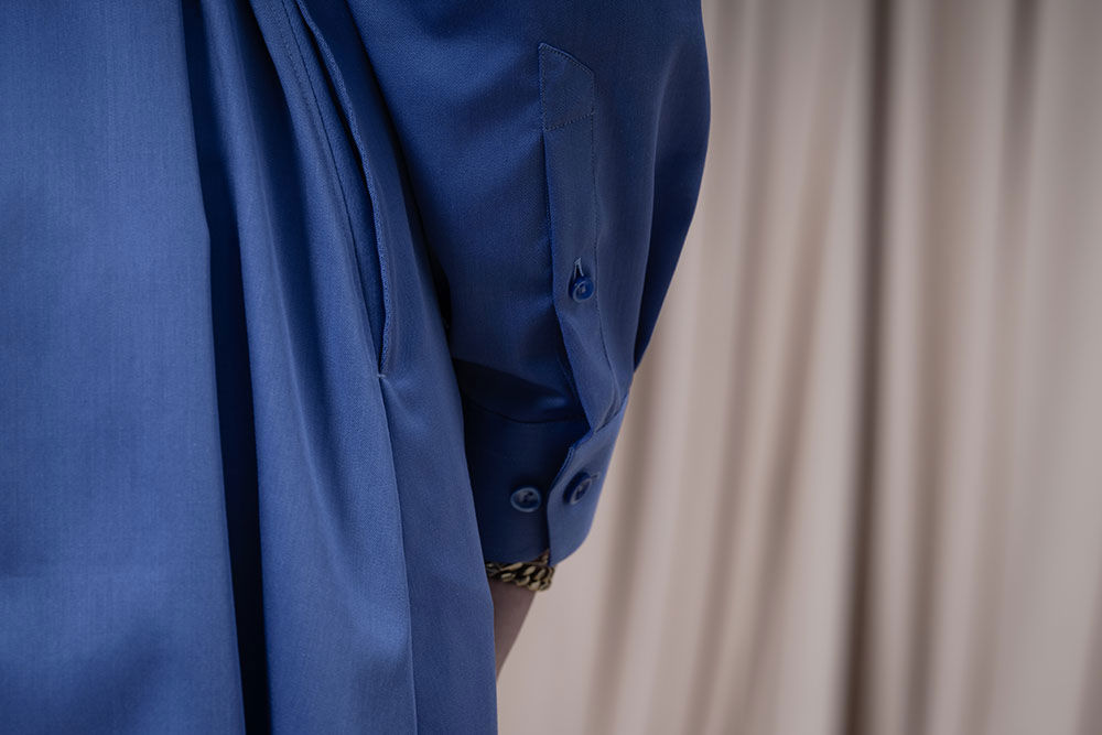 Made from 100% long-staple cotton fabric with a twill weave, the dress offers high quality and a perfect balance of movement, comfort, and lustre.