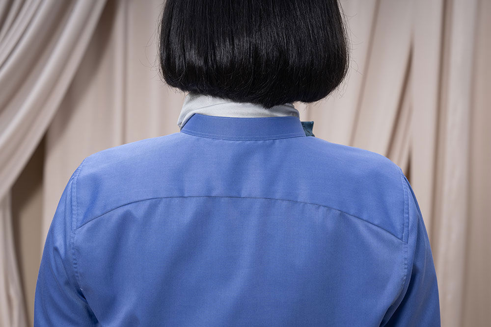 The garment is suitable for warm days and provides for generous range of motion. The standing collar contributes to airiness and the sleeve length can be adjusted as it looks just as nice with a buttoned cuff as when folded up.