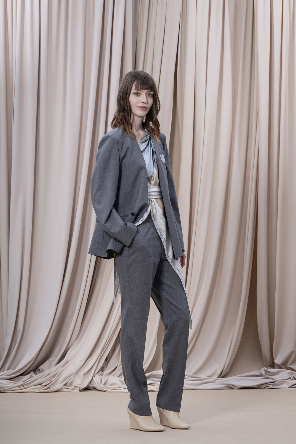 The waist can be easily adjusted by the wearer through a hidden function on the inside for ultimate comfort, according to the wearer’s own preference for that day. The waist measurement can also be increased and decreased at the centre back for adaptation to more body shapes with the help of a tailor.