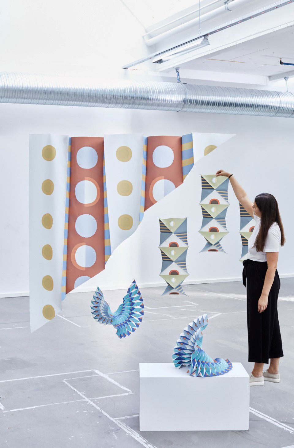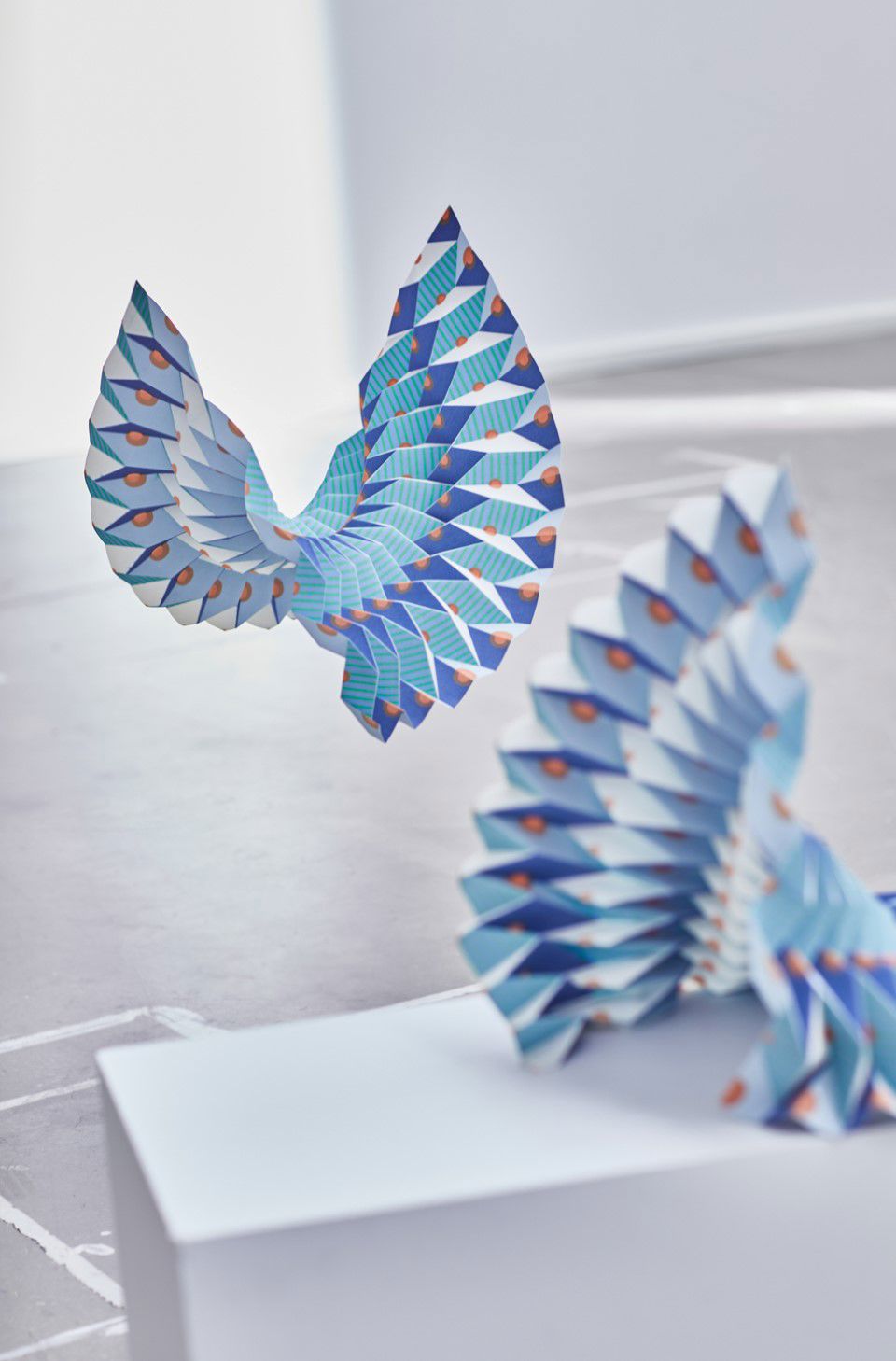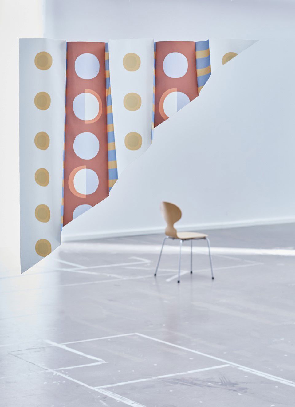 Different pleating patterns have been tested in combination with material and scale. Small paper sketches have been used to develop the surface patterns and to see how the different surface patterns are merging with each other when printed on both sides of the fabric. The printing method that has been used is transfer print. The result is a collection of three different textiles printed with surfaces patterns on both sides of the fabric. For further development the textiles can be placed in an interior context and serve as room dividers.
