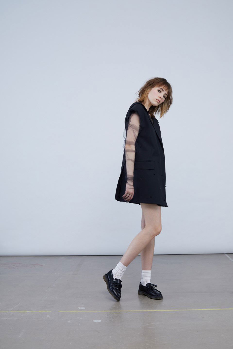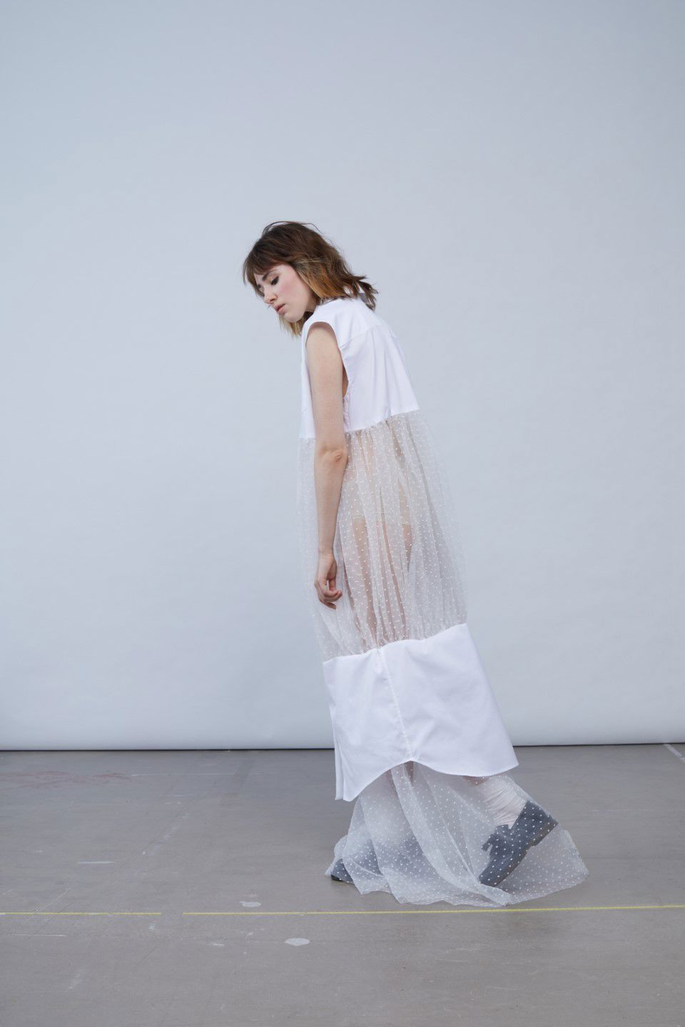 Wardrobe staples and evening wear are separated because of their different characteristics, this study aims to develop garment hybrids in between the clothing categories wardrobe staples and evening wear. The motive is to look beyond the categorizations and combine their differences to a new whole, for example, a wrinkled shirt in contrast to lace gloves. These two categories consist of design that for a long time, has been settled and the same, with a clear expression and usage there are room and opportunity for renovation and change. In these established categories there are distinct rights and wrongs regarding shape, materials and details and minor changes can transform the whole expression.