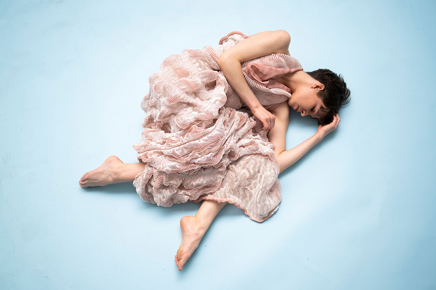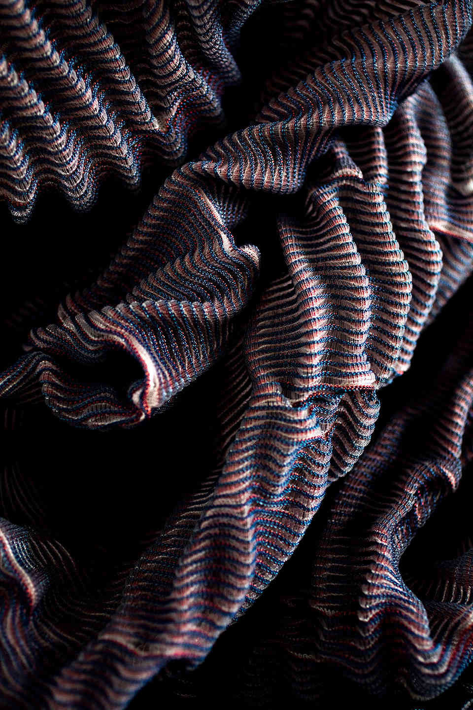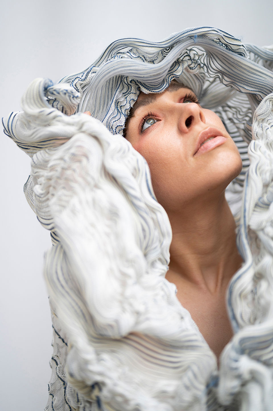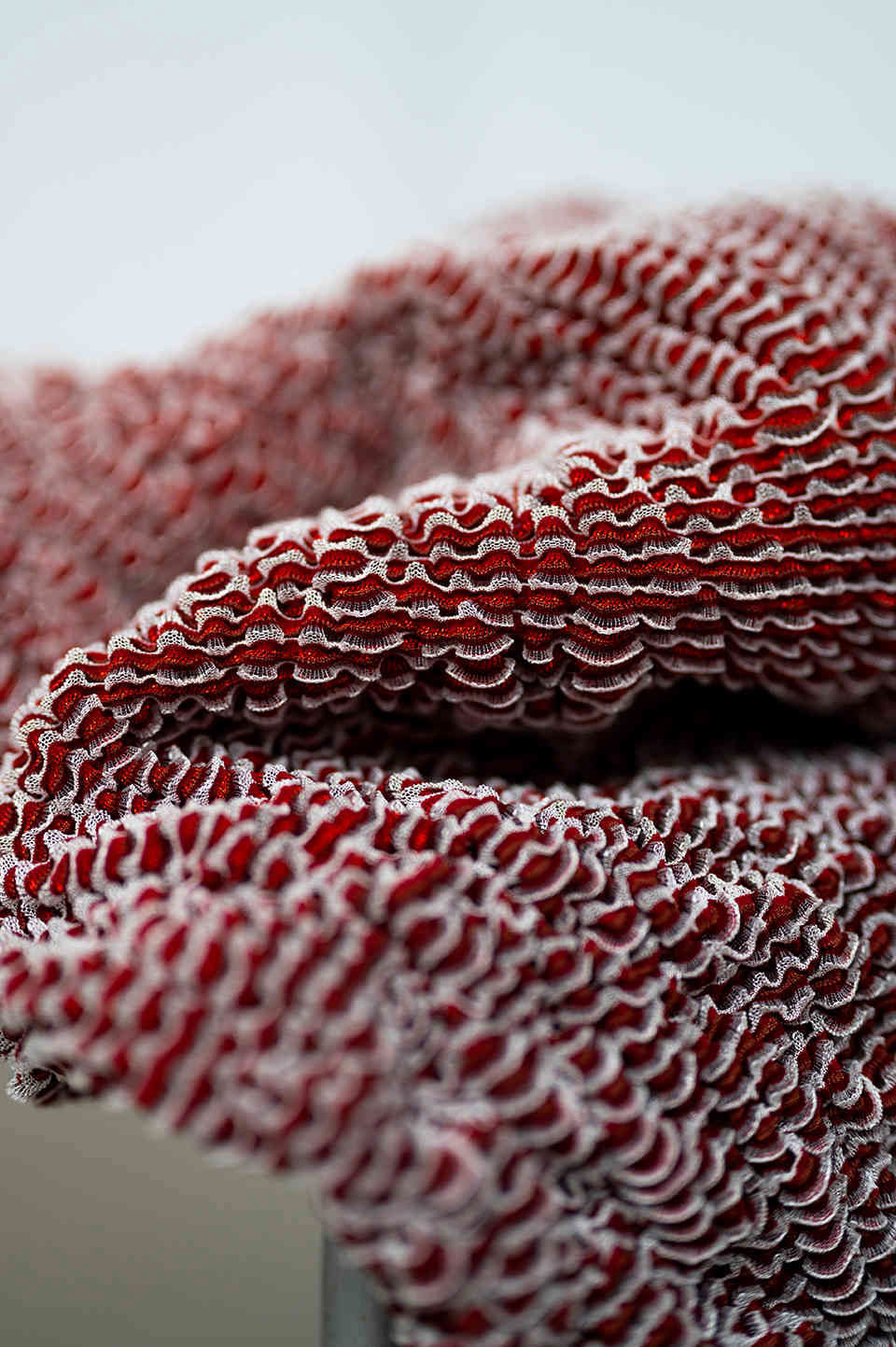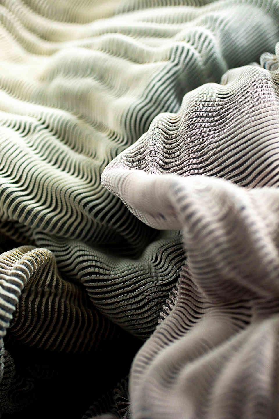 This work places itself in the field of knitted textile design and the context of body and interior. The primary motive is to investigate the tactile and visual properties of oysters and pearls, inspired by Botticelli’s painting The birth of Venus. The aim is to explore free-flowing and texture through knitted three-dimensional textile surfaces.