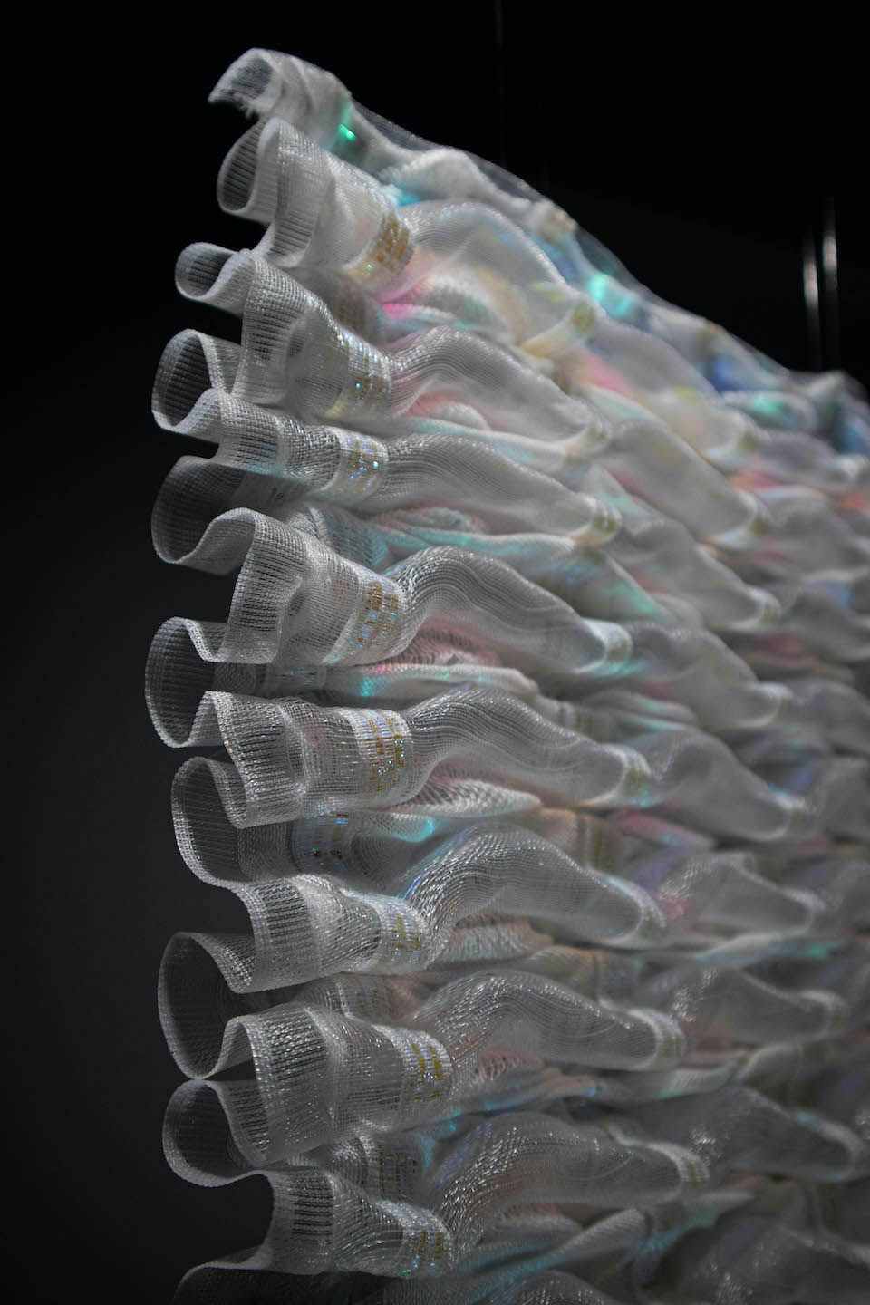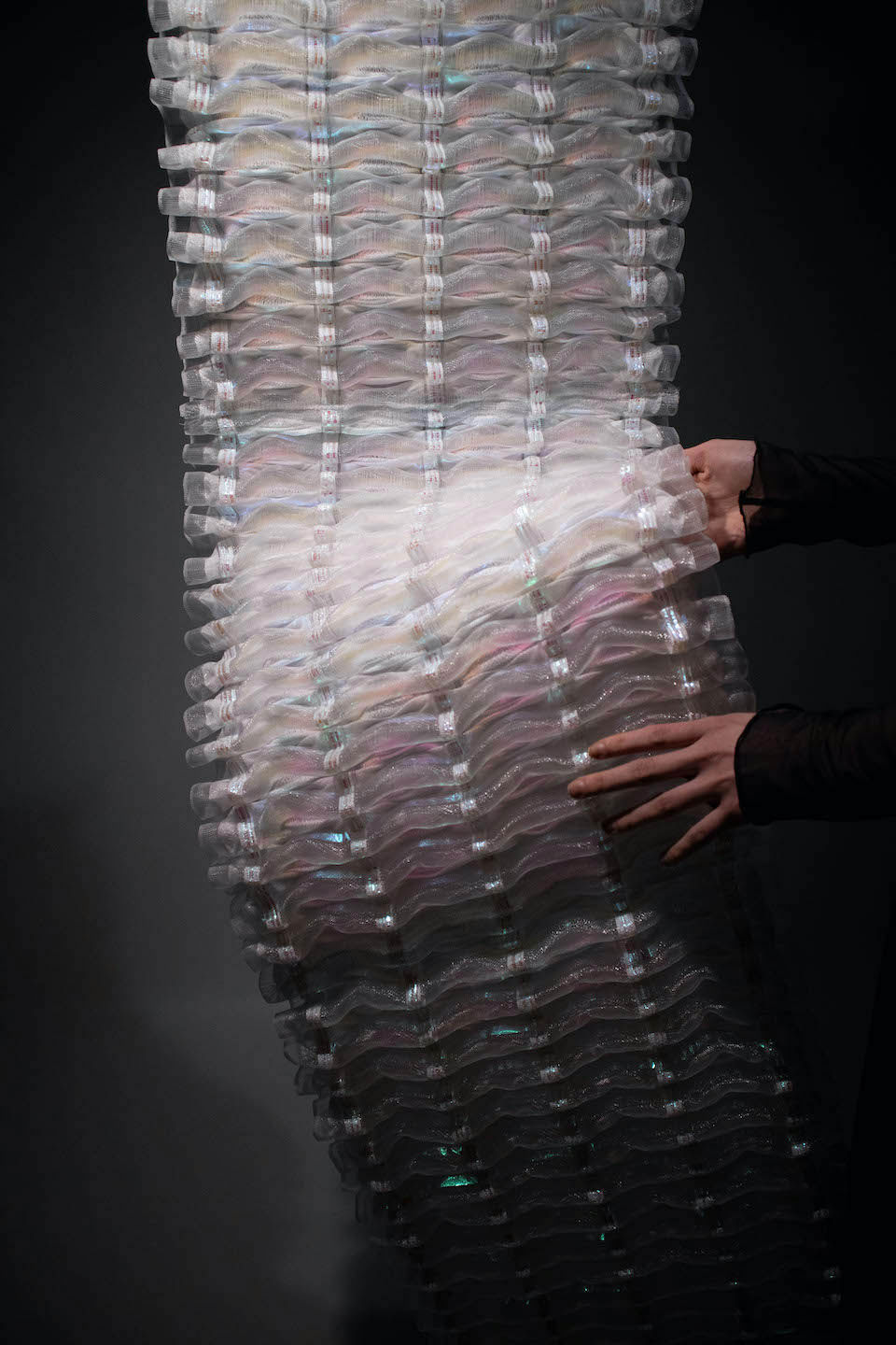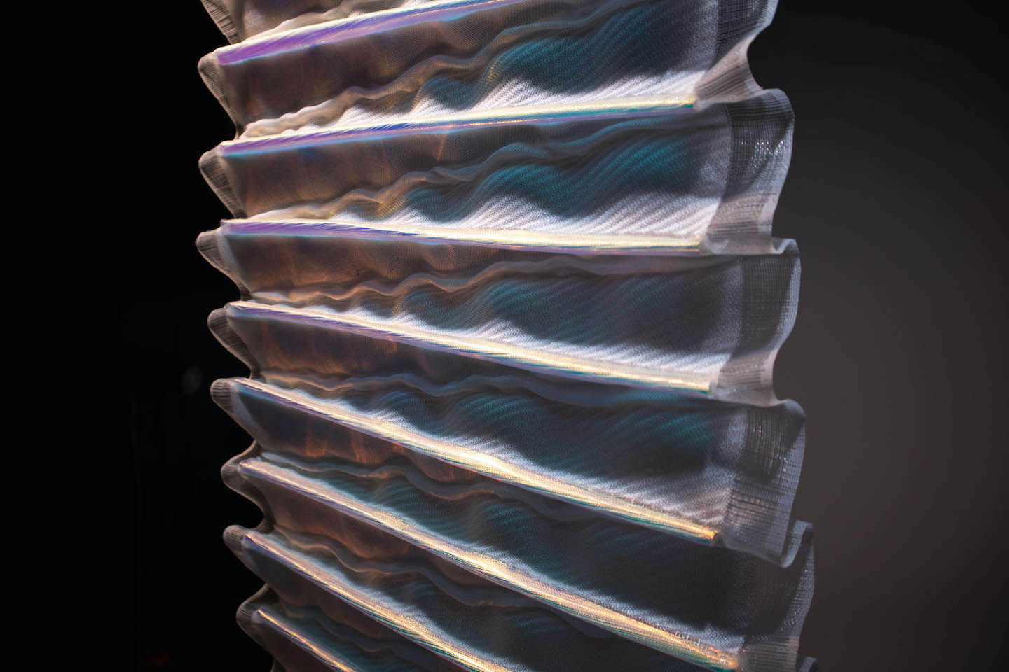 The final result is visually presented in a collection consisting of six woven textiles with multiple expressions with internal and external effects. Together, they propose a new method of working with light and colour in the design, without incorporating electronics or being connected to wires, but rather change depending on the existing light conditions in the space.