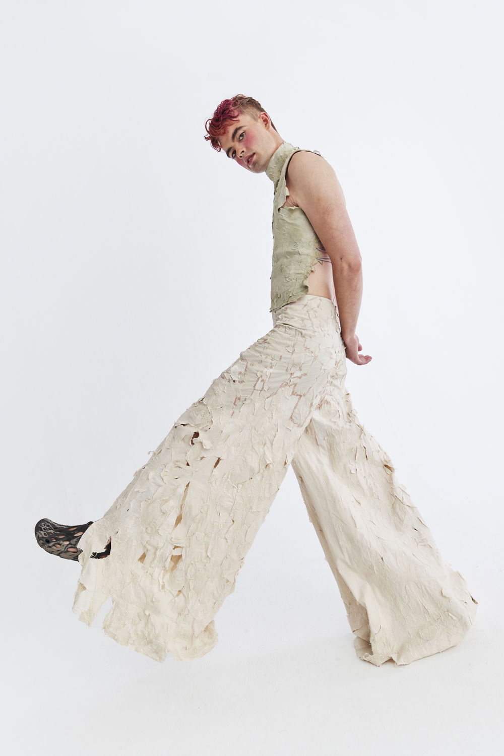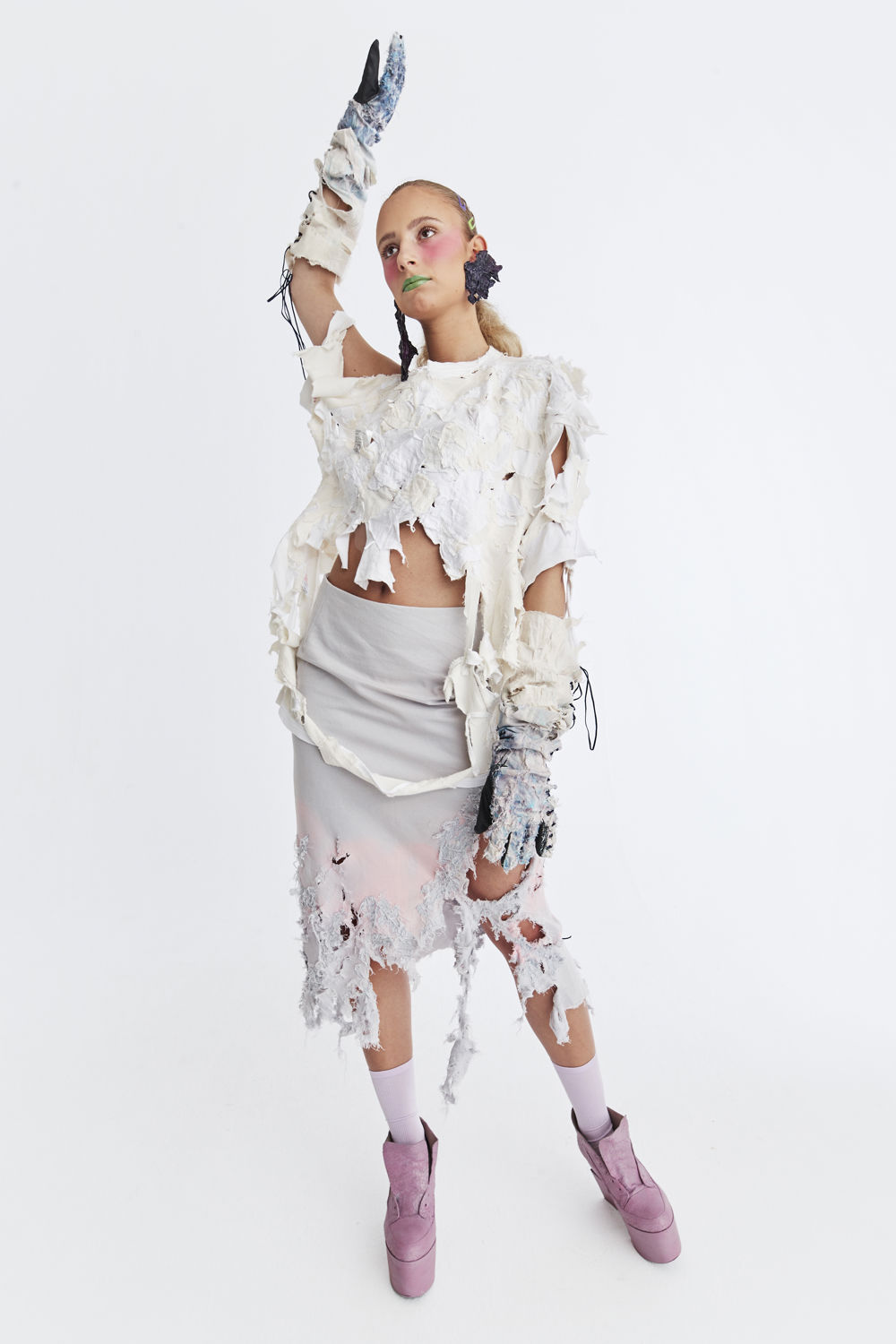 This work focuses on sustainable, handcrafted clothing using mainly low-valued cotton waste for making textile surfaces. Additionally, with inspiration from the traditional papermaking technique, where textile waste is altered into rag paper, this work wishes to emphasize the making process of creating textiles adapted to a fashion context. The methodology of the project has been limited to various mimicking techniques intended to achieve and imitate the surface expression of rag paper. To highlight the so-called paperlike material, garment archetypes were used as guidelines for silhouettes and to help the observer identify each garment's characteristics. The result of the project grew into an experimental yet semi-commercial collection, highlighting the mimicked material. The exploration suggests possibilities for developing textile surfaces using discarded materials to promote sustainable fashion.