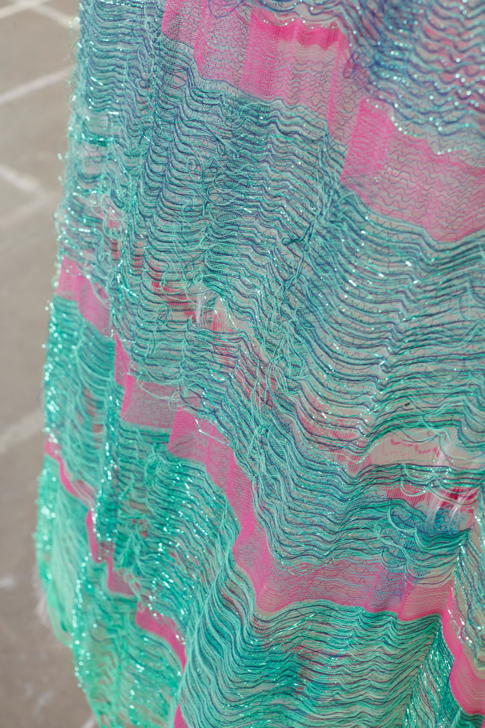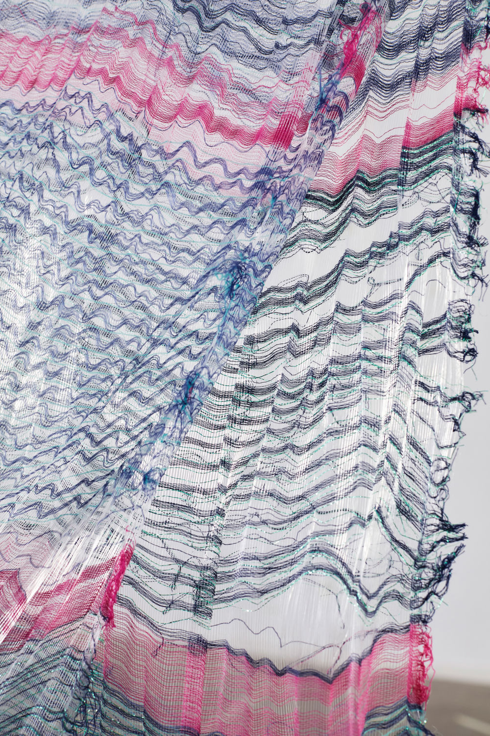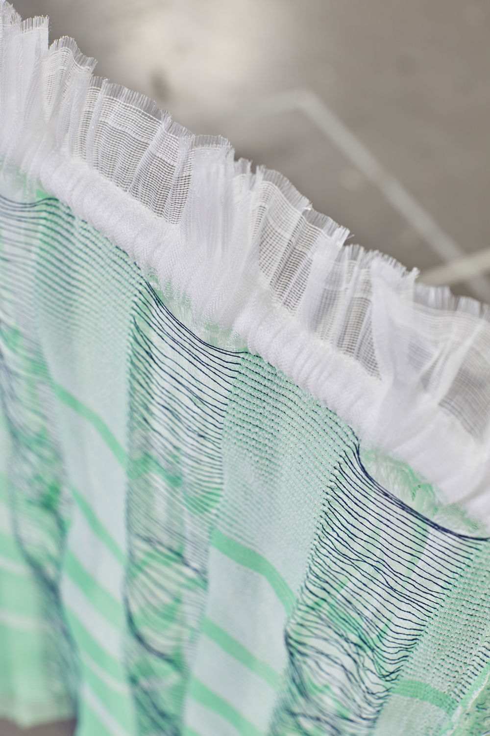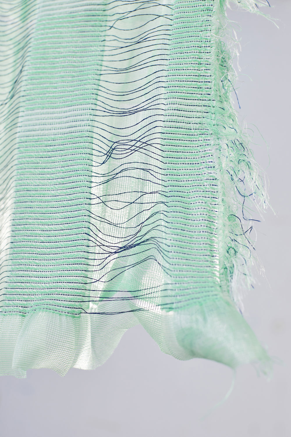 The material, structure and density in the weave determine the interaction between the textile and the external factors and these have been the focus of this project. These parameters make the various parts of the textile react in different ways, for example, the looser the threads are attached to the weave, the more they move in the wind. The textiles are placed in different outdoor contexts. The interaction between the surroundings and the material causes the textile to change expression in terms of colors, pattern, and transparency.