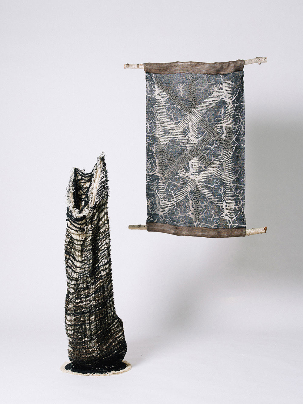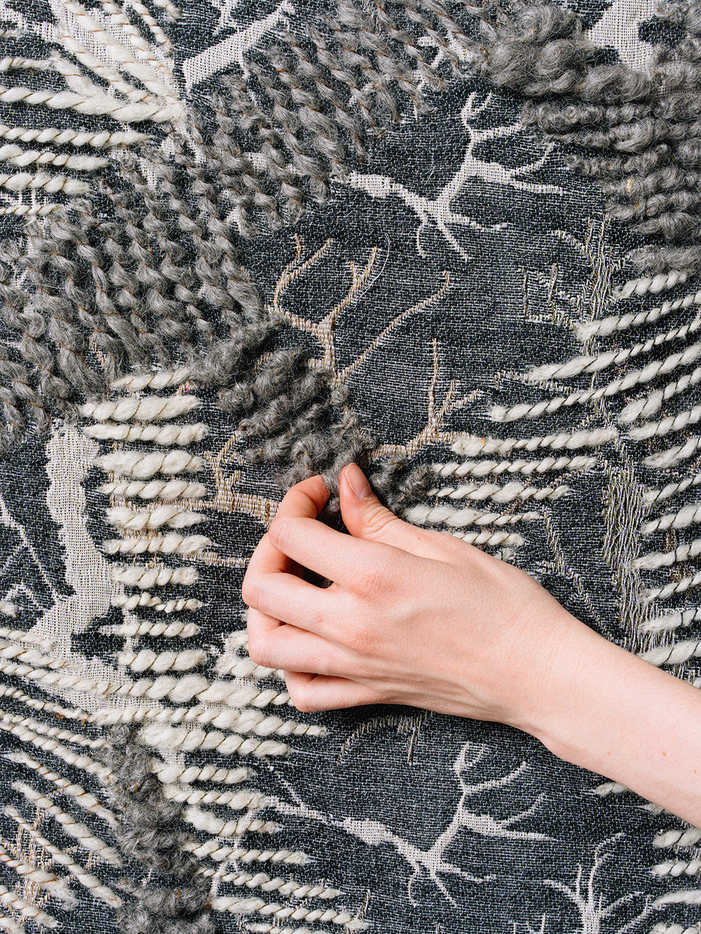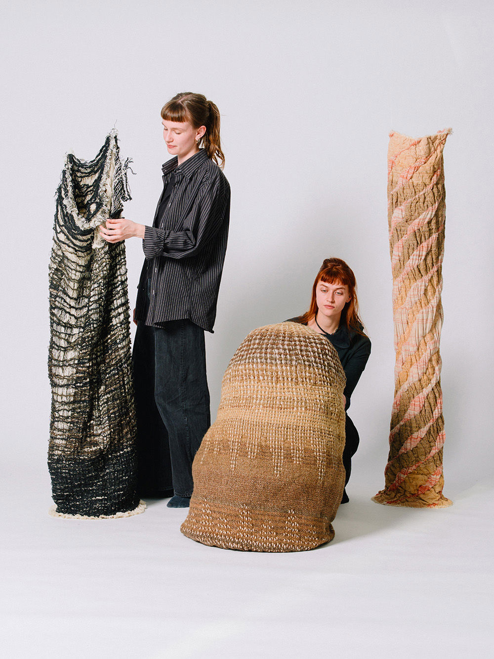 The project focuses on two key areas: spinning and weaving. Three of the works explore how to create 3D jacquard woven sculptures using double weave and fulling, symbolizing the norns. The other three use homespun effect yarns to develop intricate structures and patterns, representing the life stories woven by the norns.