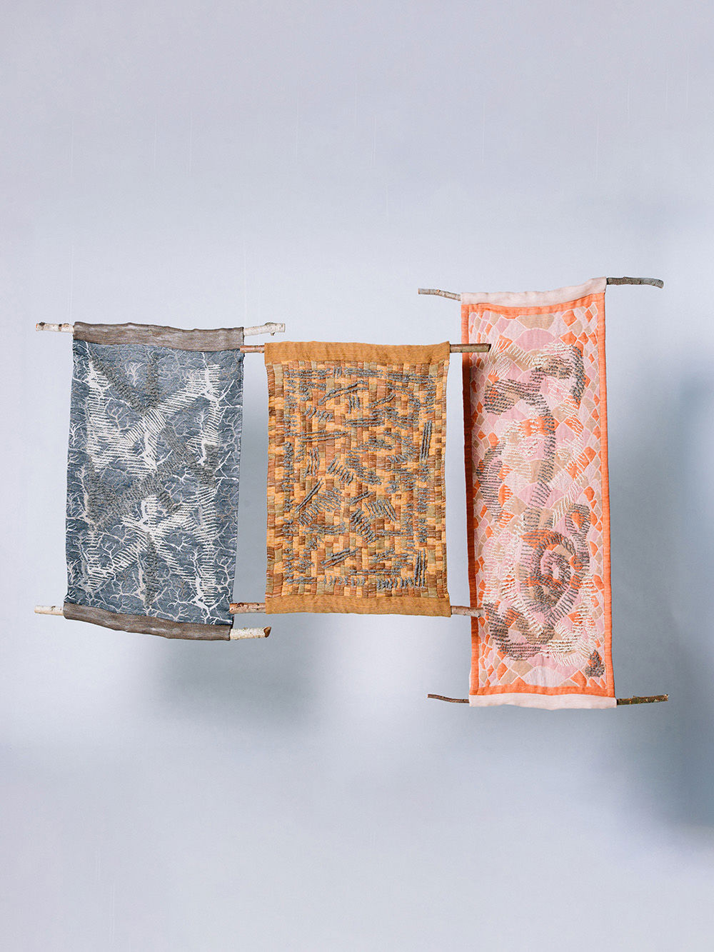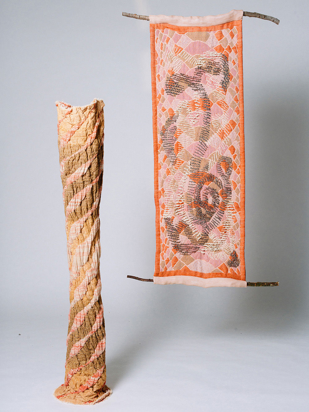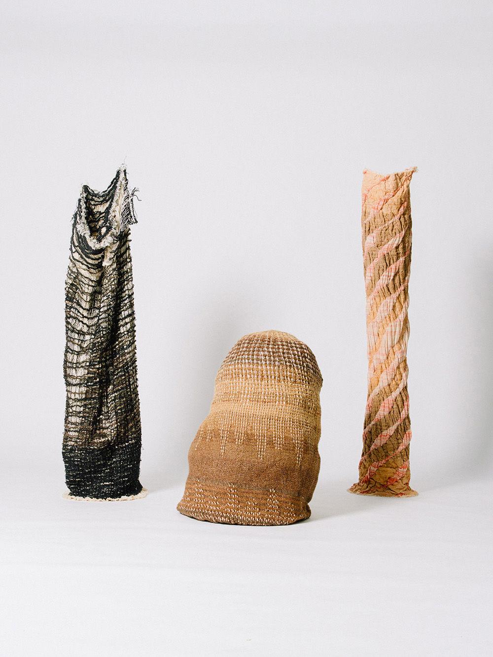 The project focuses on two key areas: spinning and weaving. Three of the works explore how to create 3D jacquard woven sculptures using double weave and fulling, symbolizing the norns. The other three use homespun effect yarns to develop intricate structures and patterns, representing the life stories woven by the norns.