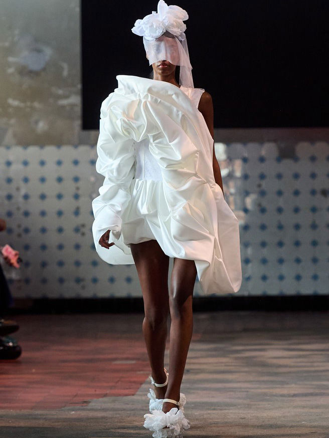 Through research into historical and contemporary bridal wear, common cuts and forms are identified and reinterpreted through experimental construction techniques. The result is a collection of five bridal garments that redefine the silhouette by shifting volume and altering garment architecture. While retaining recognisable bridal elements such as white tones, the designs offer a forward-thinking approach that balances innovation with tradition.