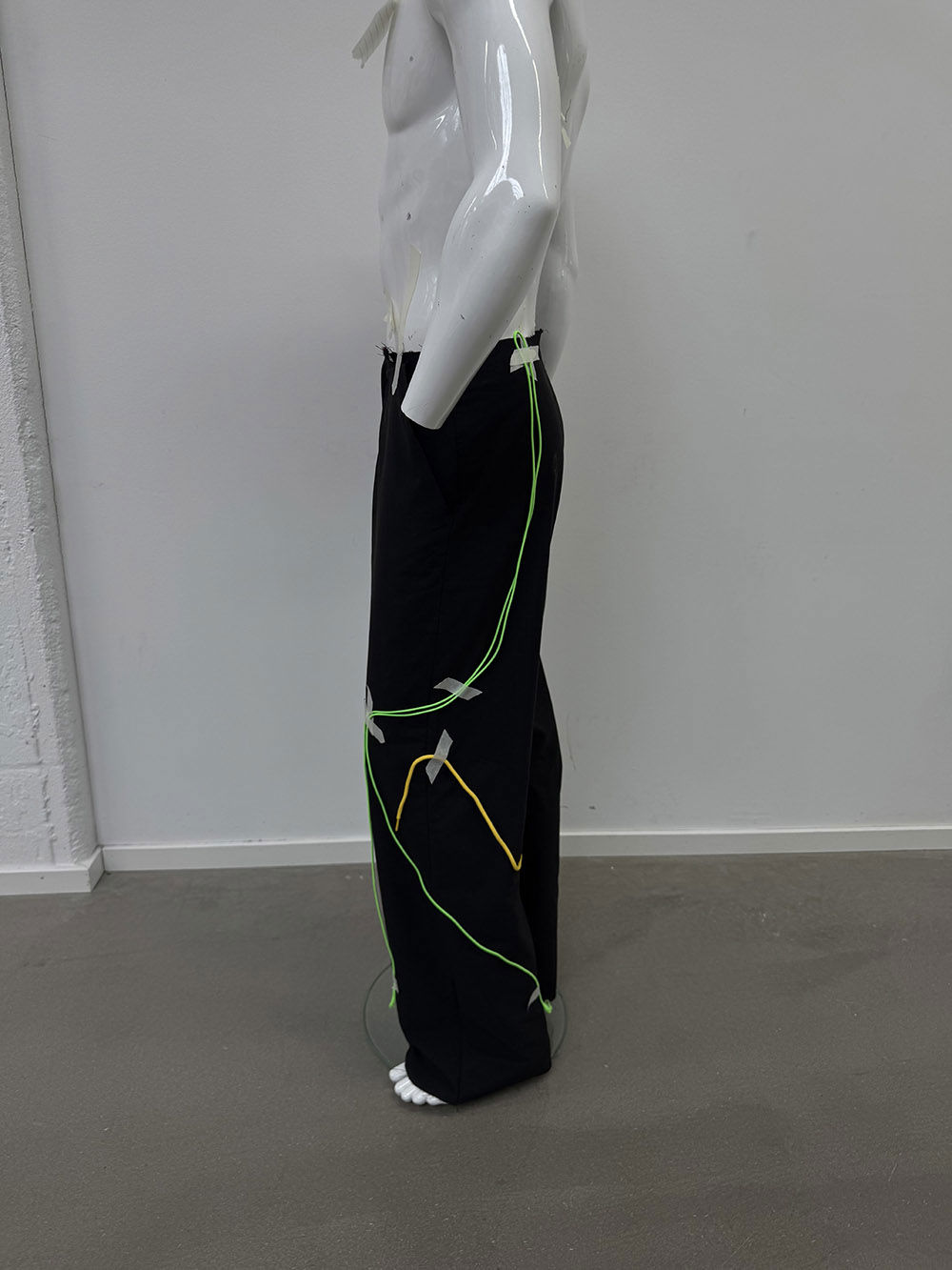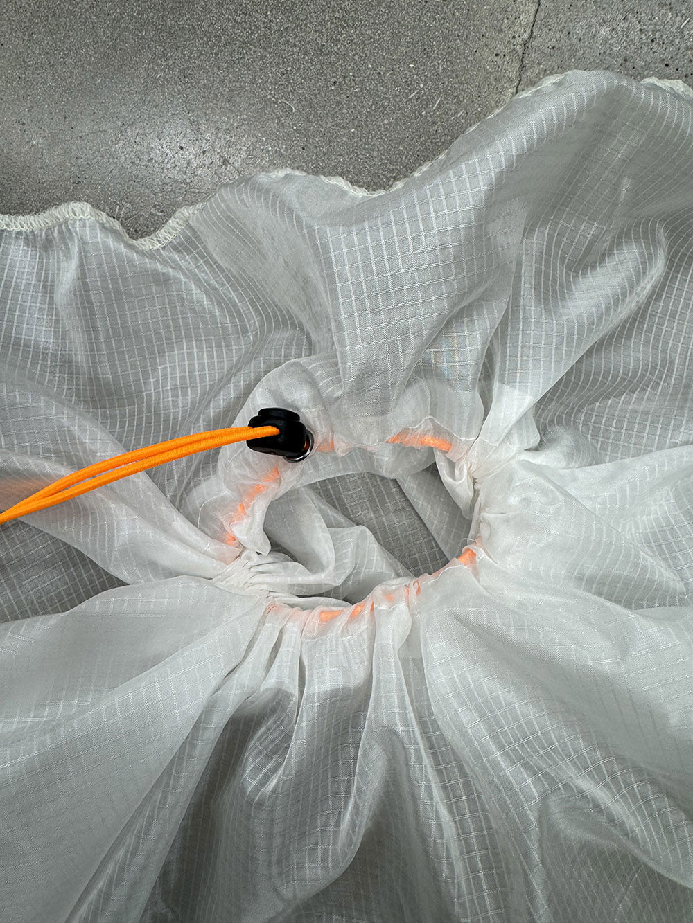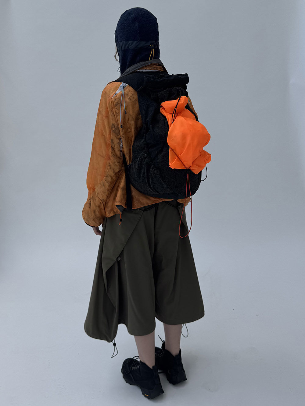 An experimental design approach was used, prioritizing repeated exploration and hands-on learning. The process included functional testing of cord systems through samples, body draping, garment construction, and fabric/print development. The outcome is a cohesive collection of five hiking-inspired outfits, with finding of how cord systems function both as a visual expression and as an active design tool, enabling interaction between materials and the human body.