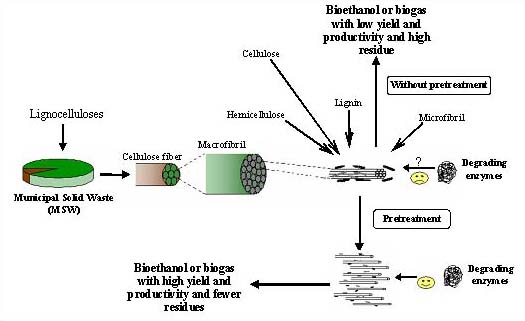 Förbehandlingstekniker för biologisk behandling av svårnedbrytbara material
