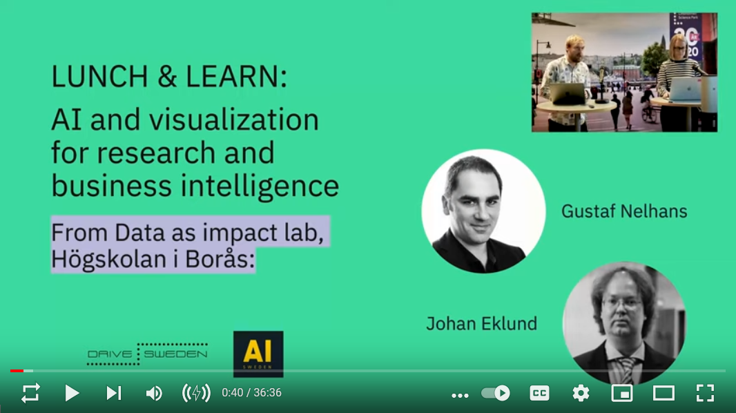 Se en inspelad föreläsning AI Sweden/Drive Sweden Lunch and Learn från Lindholmen Science Park där vi berättar om några ansatser som vi arbetar med (på engelska):