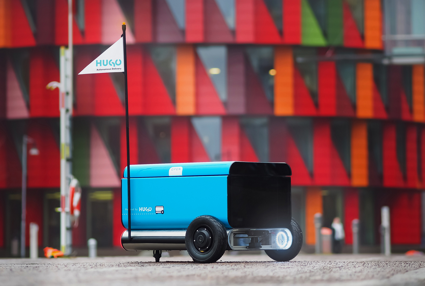 Det blir allt vanligare att handla över nätet. Därmed har leveranser och returer av paket ökat vilket också medför ökad klimatpåverkan. Syftet med leveransroboten Hugo är att undersöka om det går att minska utsläpp, skapa effektivare paketreturer, minska behovet av förpackningsmaterial samt möjliggöra för snabba transporter utanför traditionella öppettider. I utvecklingen av Hugo deltar många olika aktörer bland annat forskare, företag och kommuner.