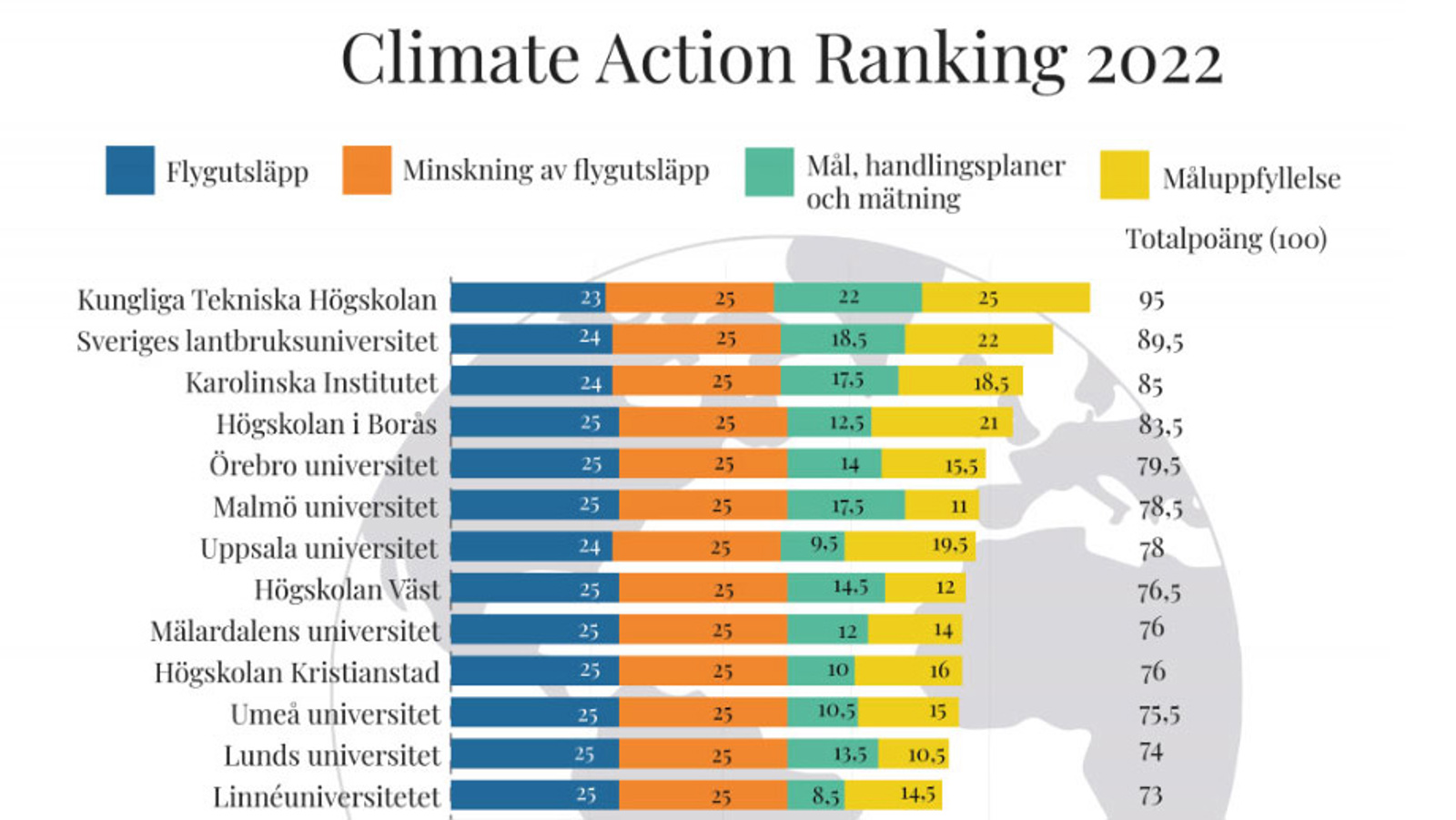 – Det är bra att vi ligger kvar rätt högt i rankingen. Att det kan slå olika mellan åren inser man när några lärosäten som toppade förra året ligger långt ner i år. Det avgörande är till sist att utsläppen hålls nere, ja, helst minskar.