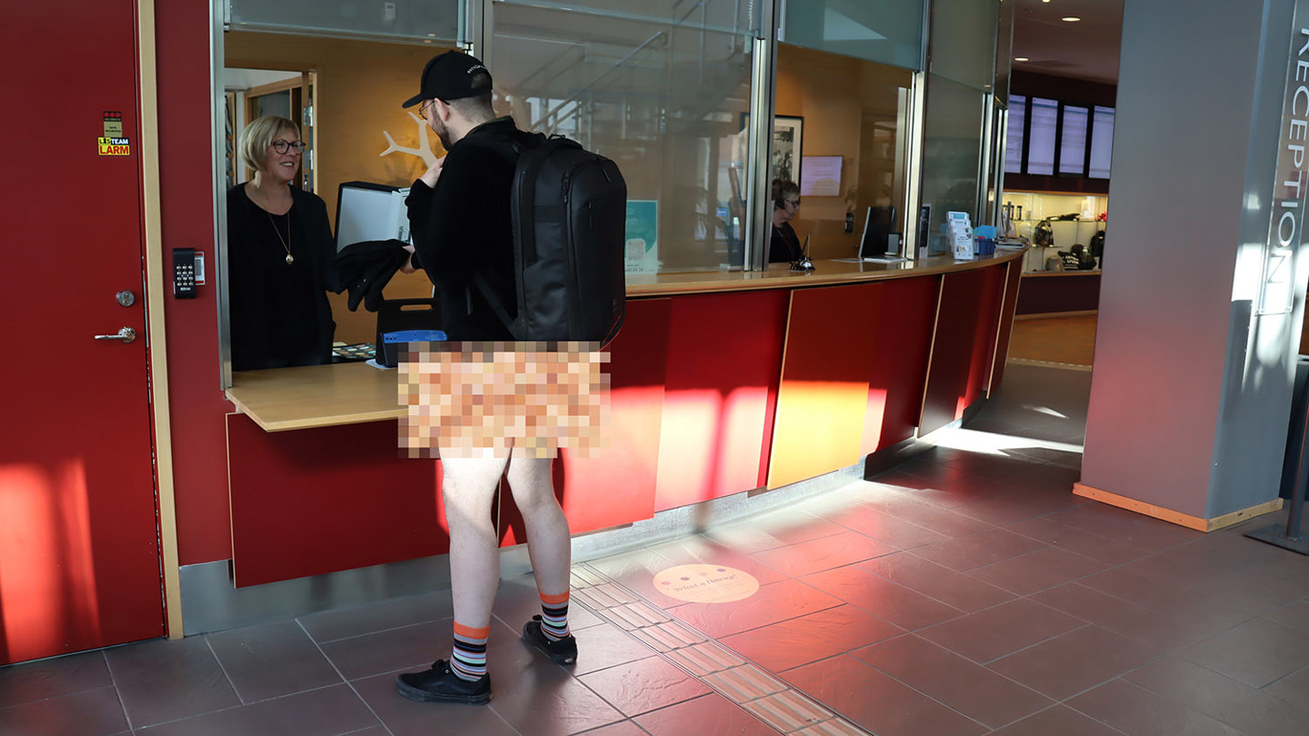 – Det känns underbart att äntligen återigen få välkomna alla till vårt campus. Återgången till campus har gått relativt bra, men vi har fått många klagomål på både studenter och personal som saknar kläder på underkroppen. Visst, en del har pyjamasbyxor på sig, men vi måste sätta ner foten, säger Ben Bahr vid Campus och hållbarhet.