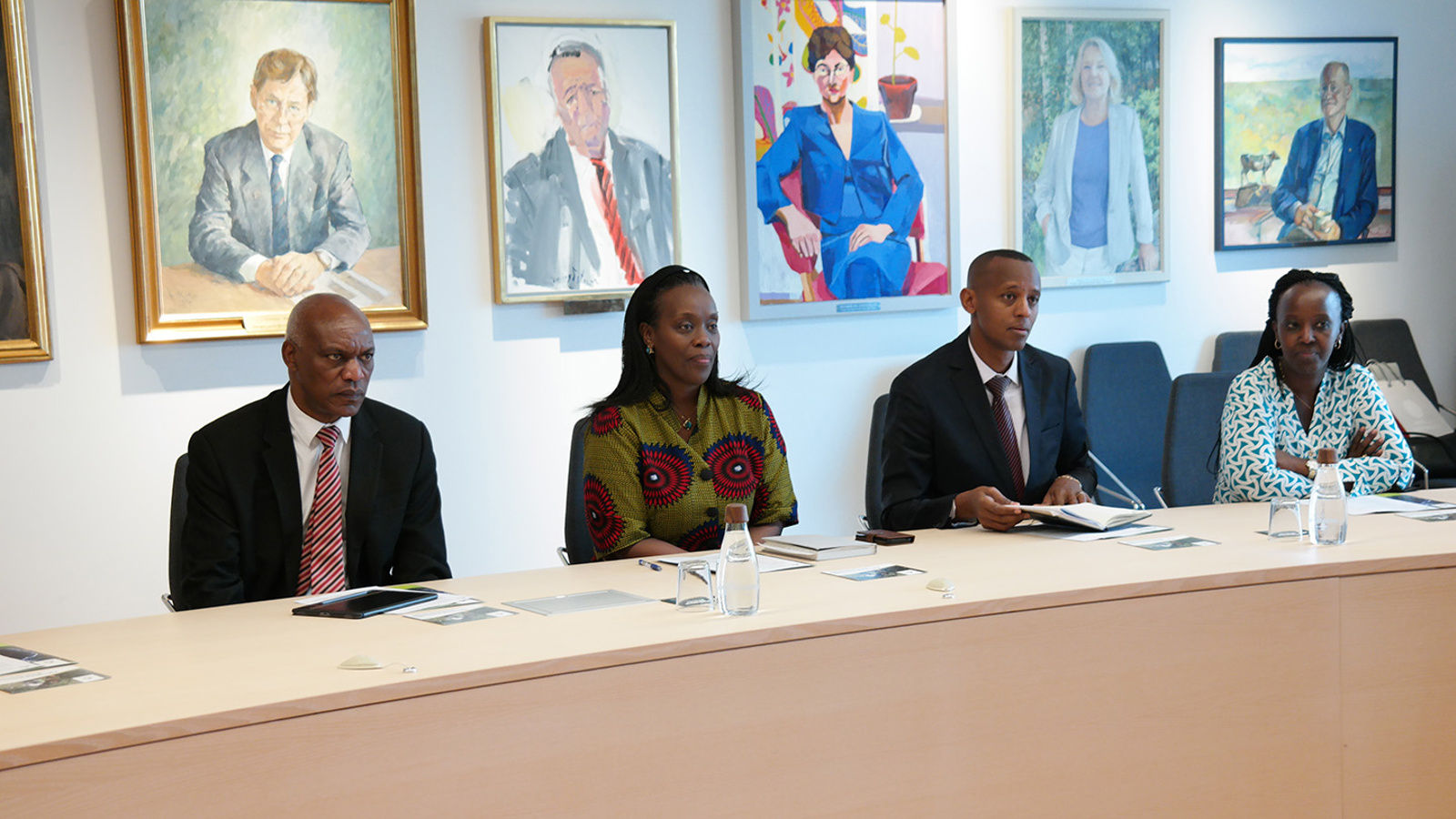 Foto: Från vänster: Professor Alexandre Lyambabaje rektor vid University of Rwanda, Dr. Diane Gashumba, Rwandas Nordenambassadör, Etienne Ruvebana, huvudkoordinator för Rwanda-Sverige programmet, och Aline Umubyeyi, Deputy koordinator för programmet.
