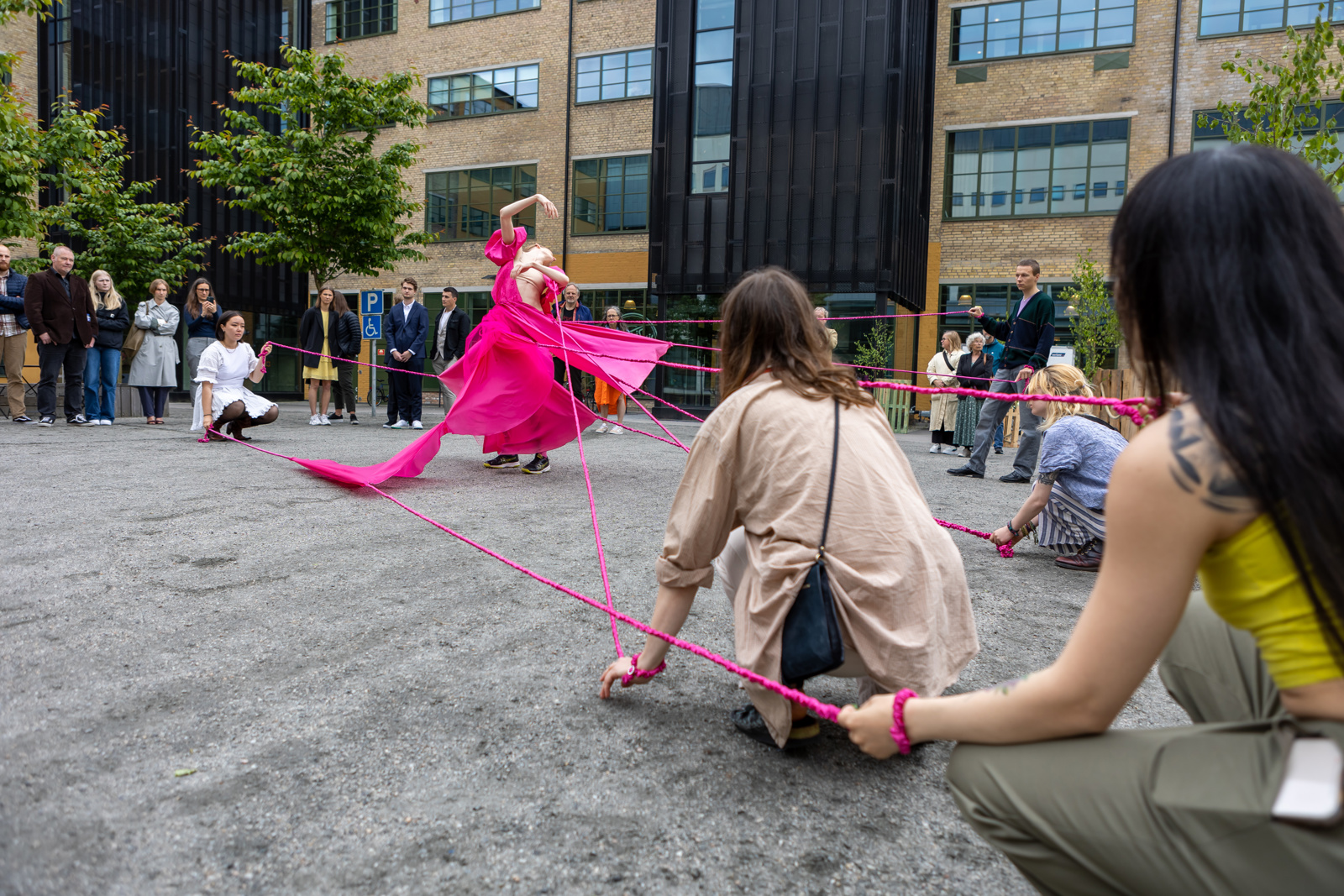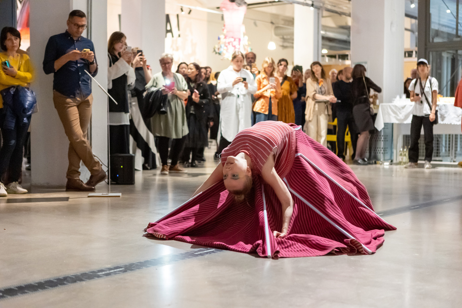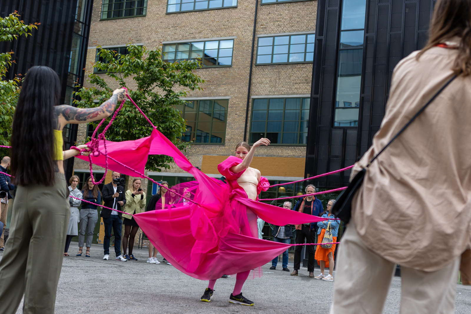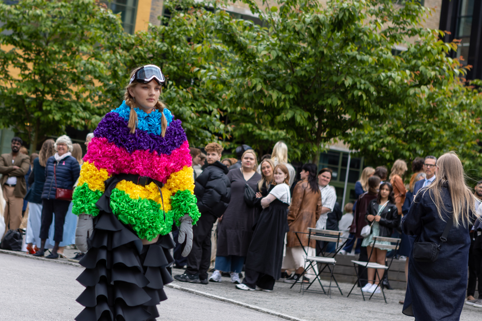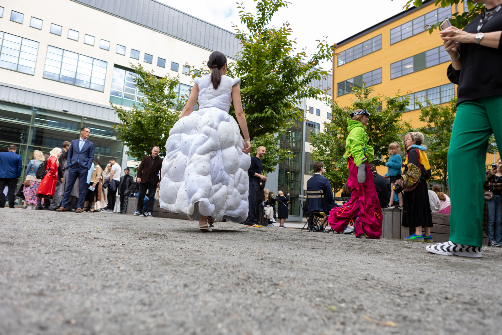 Under dagen fick besökare se examensprojekt, som visar nya möjligheter inom framtidens textil- och modedesign, två live performance och en mingelvisning utomhus på innergården vid Textile Fashion Center.