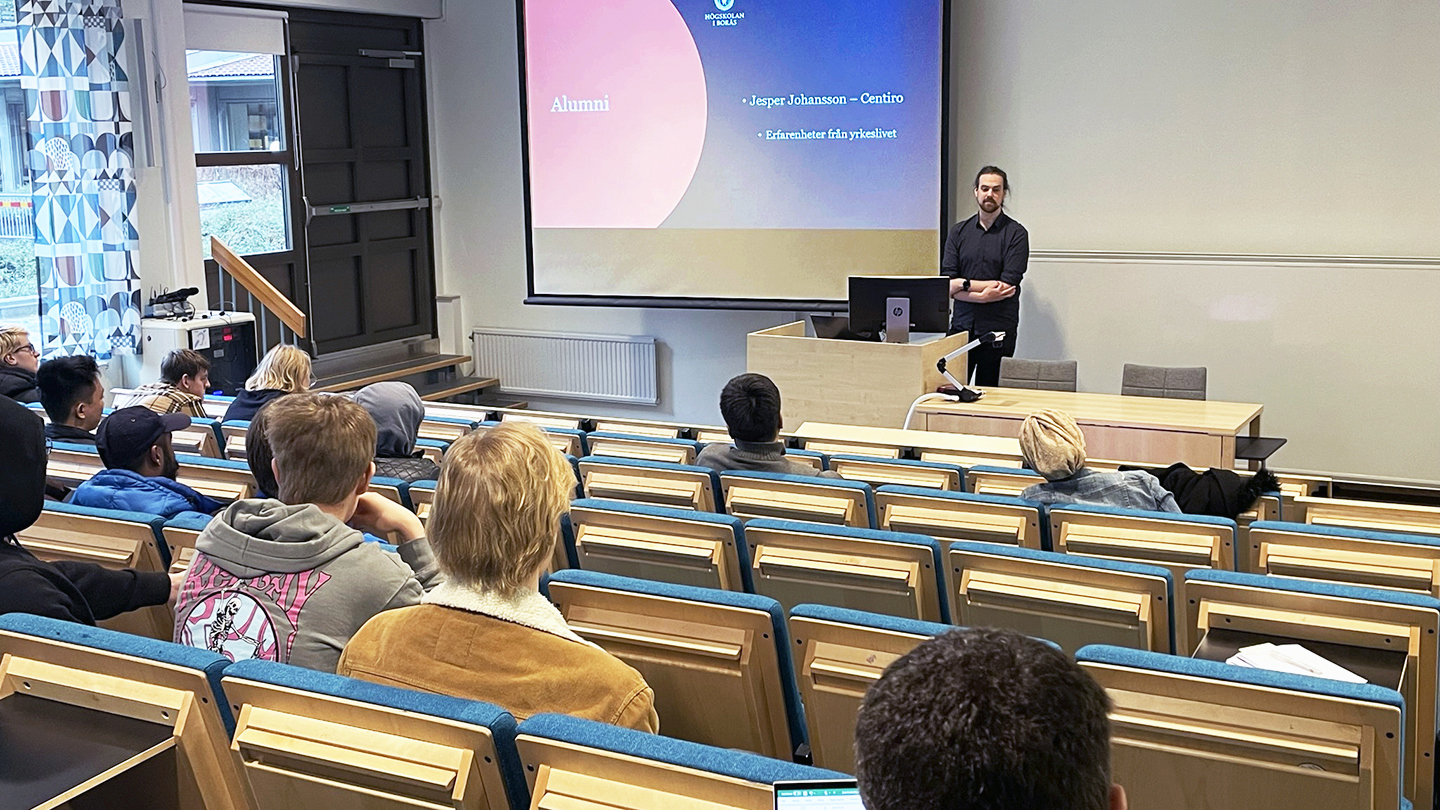 Nyligen besökte 30-talet IT-elever från LBS Kreativa gymnasiet högskolan. Programansvariga presenterade institutionens utbud tillsammans med Jesper Johansson, mjukvaruutvecklare på Centiro. Jesper Johansson är alumn och läste för några år sedan Systemarkitekturutbildningen.