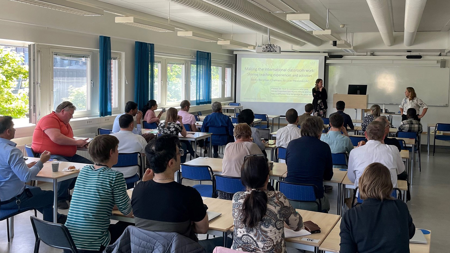 Becky Bergman, lektor vid Chalmers tekniska högskola, och Lucie Weissova, internationell samordnare vid Högskolan i Jönköping, höll i workshopen och delade sin kunskap och erfarenhet kring interkulturell kommunikation och internationalisering på hemmaplan med deltagarna.