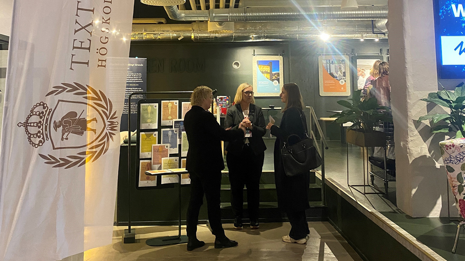 Hon var också med och bemannade Green Room där hon tillsammans med kollegor berättade för besökarna om Textilhögskolans möjligheter till kompetensutveckling genom till exempel fristående kurser och uppdragsutbildning.