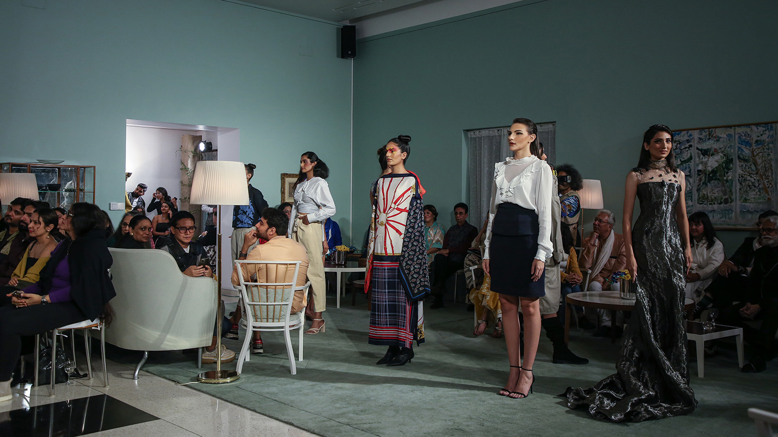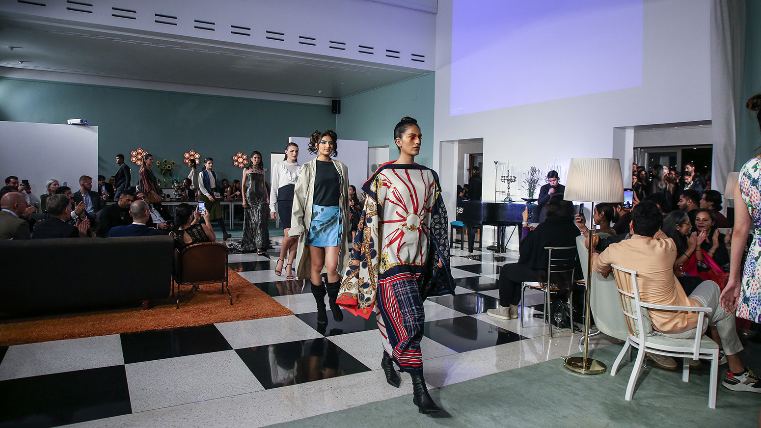 Förutom exempel på framtidens hållbara mode visade högskolan också en klänning från ett stort EU-projekt för personer med dövblindhet.