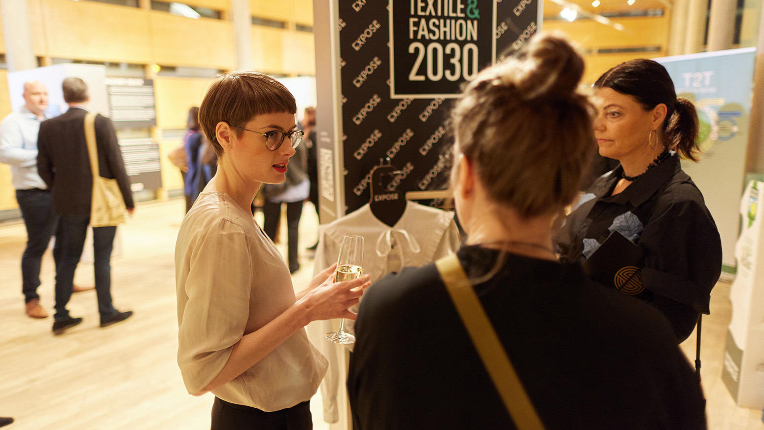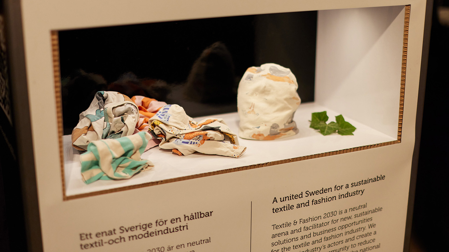 Efter presentationerna kunde besökarna titta på några exempel på hållbart mode som tagits fram i olika samarbeten vid Science Park Borås, bland annat en keps gjord av pappersgarn från svensk skog, en ny babymössa tillverkad av insamlade begagnade barnplagg, en kjol skapad av material från förbrukade vårdkläder och en blus omdesignad av gamla insamlade herrskjortor.