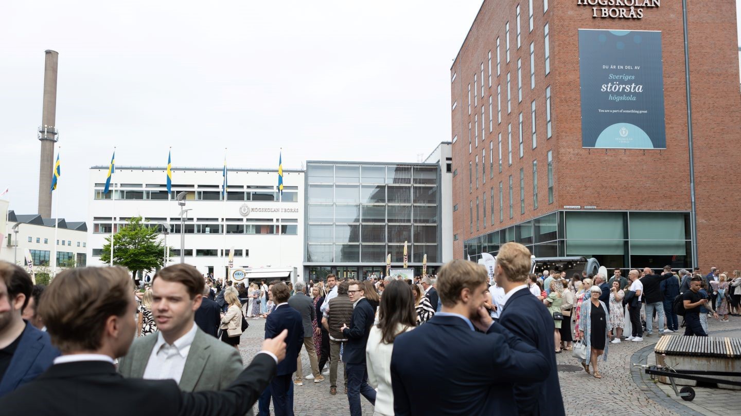 Under Exit 2024 bjöd Högskolan i Borås in till ett glädjefyllt examensevenemang utomhus på campus, där både studenter, anställda, anhöriga och vänner fick njuta av en minnesvärd dag i solen. Akademiplatsen dekorerades och förvandlades dagen till ära till en välkomnande mötesplats med både DJ och matvagnar.