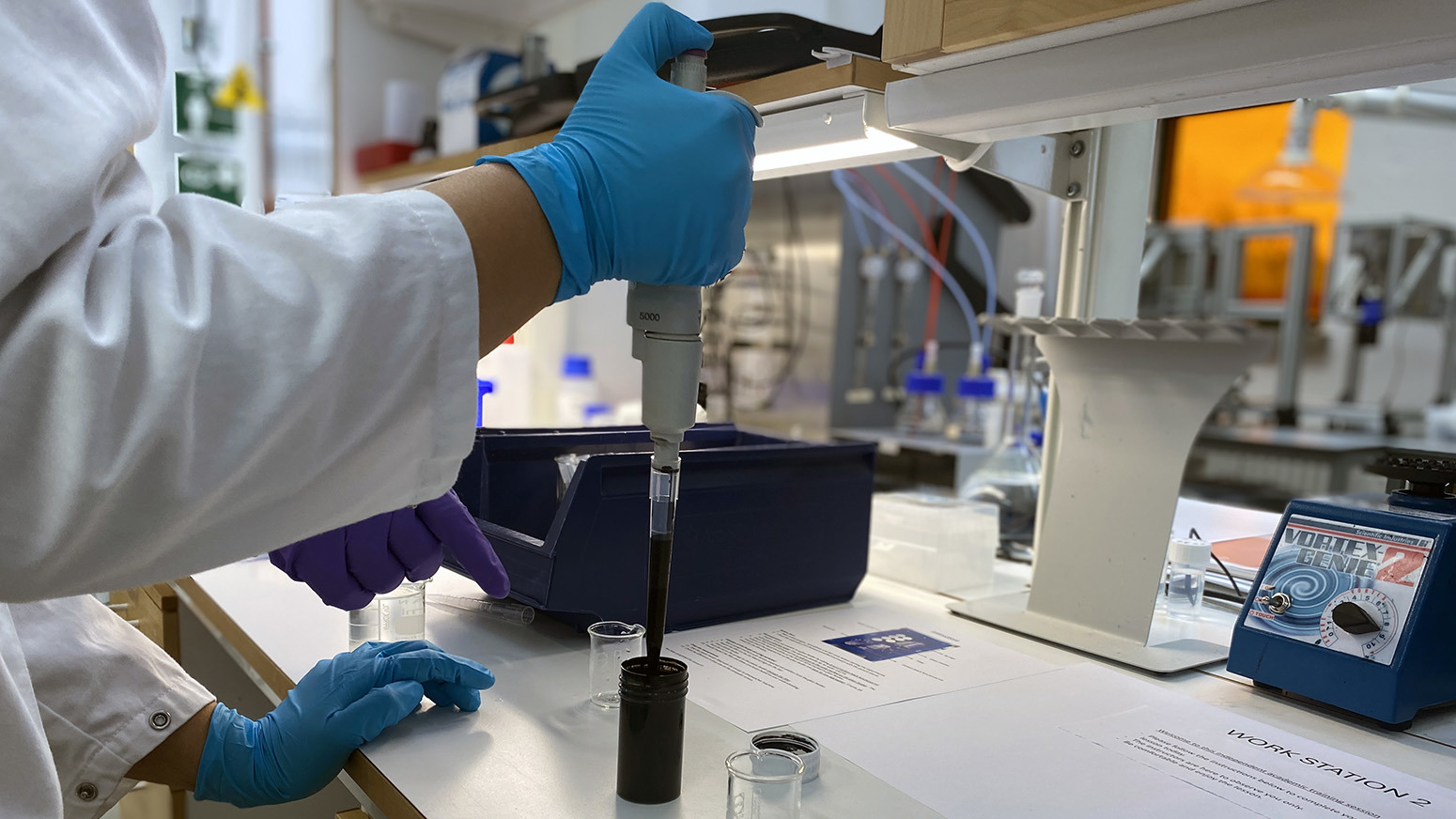 Studenterna får i uppgift att blanda bläck, testa det och sedan observera droppformationen. Detta gör de både i labbet och virtuellt, i en applikation speciellt framtagen för den här studien. Det är ett tiotal studenter från första året i utbildningen Textil produktutveckling och entreprenörskap, samt två studenter från Masterutbildning i textilteknik, som har anmält sig frivilligt att delta i studien. De får under dagen också svara på frågor om sina upplevelser.
