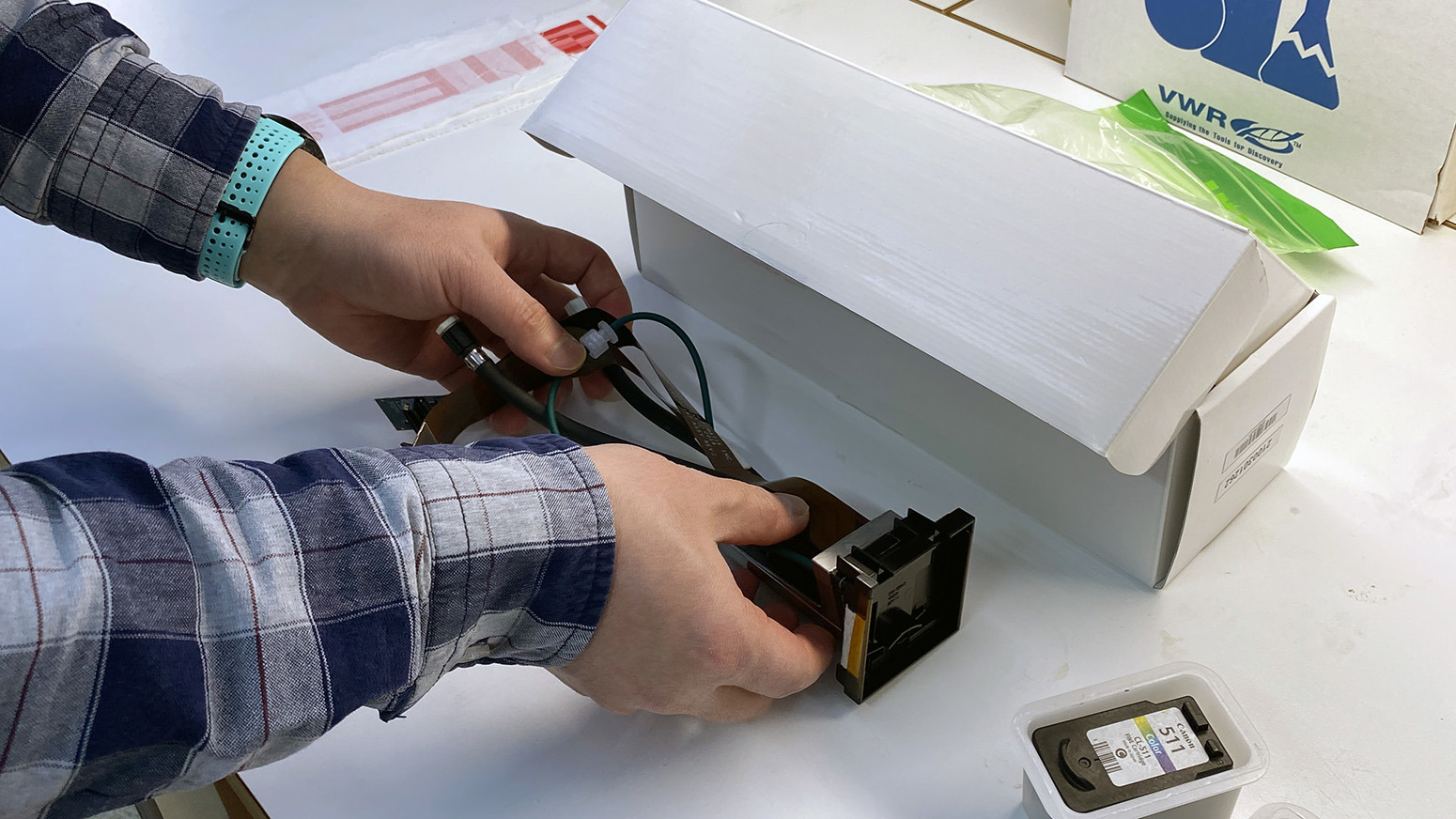 Detta viktiga tillskott till labbet ”Forskningslabb analys/inkjet” blev möjligt tack vare Stiftelsen Svensk Textilforskning, som också finansierat flera andra maskiner i labbet. För den här satsningen beviljades medel på 2,5 miljoner kronor.