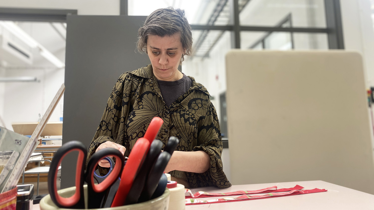 – Jag har gjort mycket själv innan också, jag har alltid varit punkig på det sättet, finns det inte resurser så kör jag ändå. De här veckorna på Textilhögskolan har varit kul, det har varit väldigt positivt att få testa på allting och lyxigt att få komma hit och träffa alla fina lärare och vistas i lokalerna.