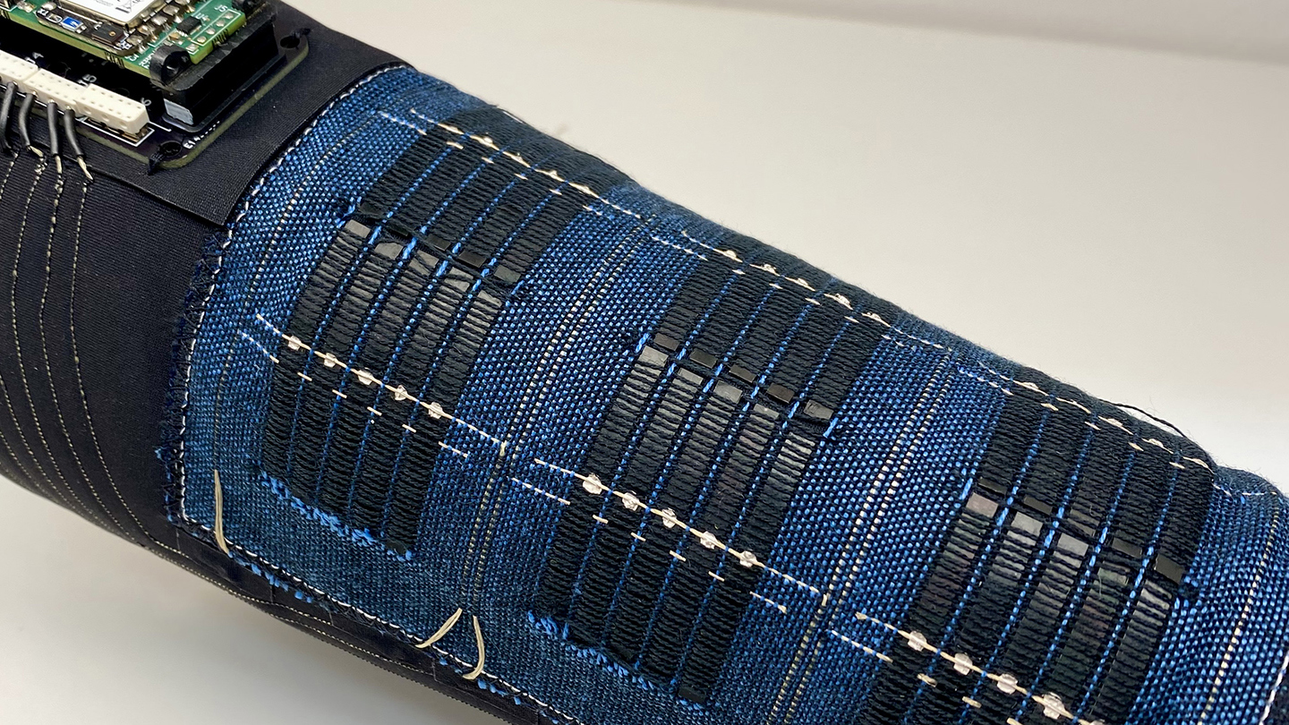 Som en del i denna forskning har doktoranden Carin Backe i sitt avhandlingsarbete utforskat hur garn med elektromekaniskt aktiva konduktiva polymerer (EAP:er) kan vävas in i textilier. När dessa garner aktiveras skapas en mekanisk rörelse som får tyget att ändra form. Det innebär att själva textilen blir ett aktuerande material, alltså ett tyg som kan röra sig och utföra ett fysiskt arbete. EAP-garnerna behöver tillgång till joner för att kunna aktuera. Normalt sett krävs det att materialet är nedsänkt i en vätska (en elektrolyt), men det är inte praktiskt när textilen ska användas som ett plagg.