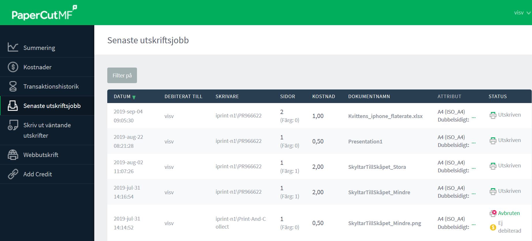 - Se sammanställning över ditt utskriftskonto (Summering)