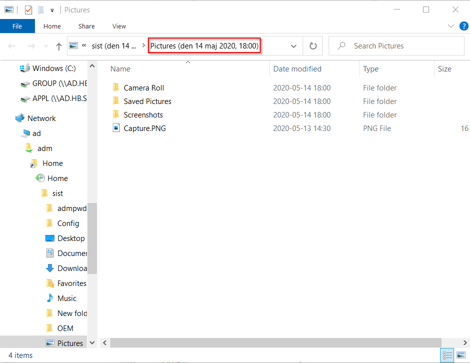 - Mappen visas nu så som den såg ut vid den aktuella tidpunkten. Vid behov går det att öppna filer/mappar och granska innehållet.