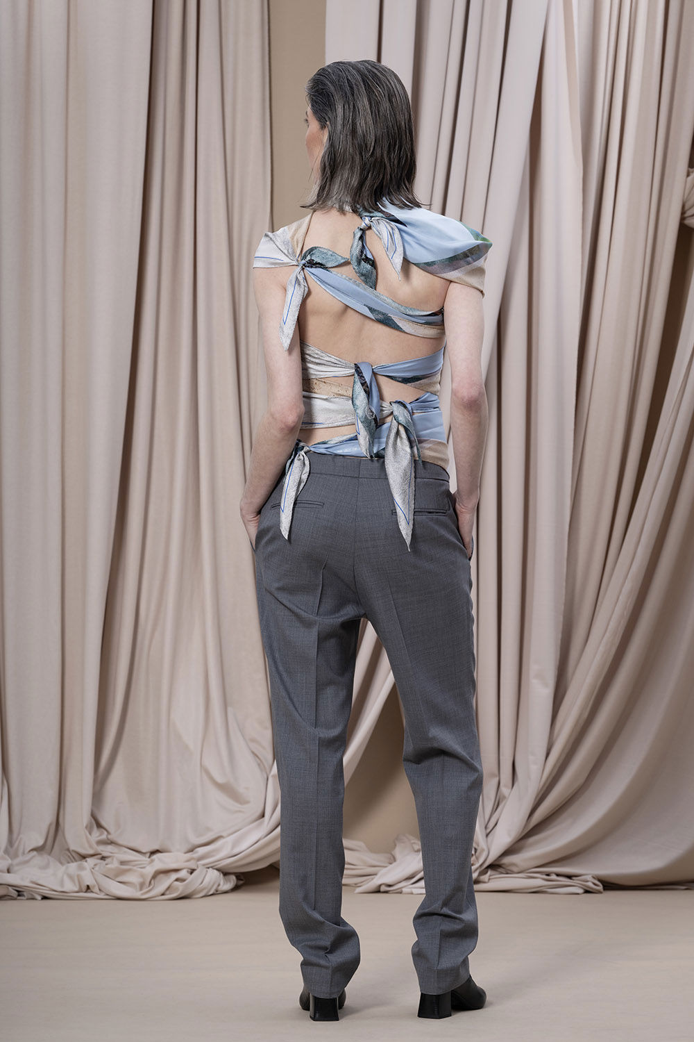 Scarfen är tillverkad i Europa i naturmaterialet siden, vilket gör den ömtålig. Användaren kommer att behandla den mer varsamt, vilket förlänger dess livstid. Formen har anpassats för att ge en optimerad läggplan, vilket minimerar spill.