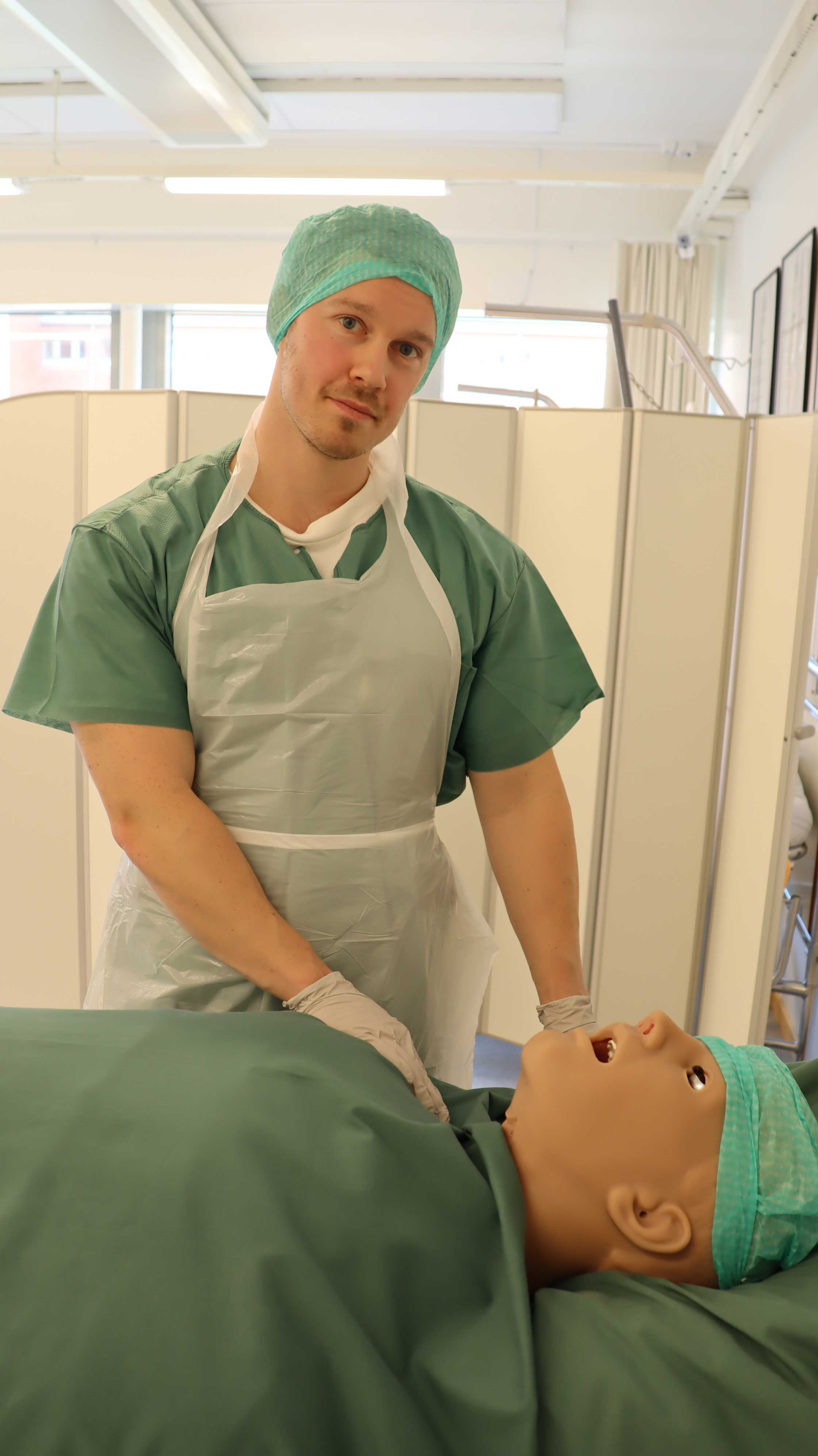 – Jag ska precis börja andra terminen och då har vi en lång verksamhetsförlagd utbildning (VFU) på tio veckor. Jag kommer att vara på en operationsavdelning på Norra Älvsborgs Länssjukhus (NÄL) i Trollhättan. Förra terminen hade vi en kortare VFU på två veckor och teoretiska kurser inom perioperativ vård, vilket innefattar patientens omvårdnad före, under och efter operation. Vi övade också på kliniska moment på Kliniskt träningscentrum (KTC). Som operationssjuksköterska har du huvudansvar för steriliteten och håller ordning på instrumenten under en operation. Det kräver mycket träning på olika moment, exempelvis får vi lära oss drapering (klä patient), positionering på operationsbädden för att undvika skador, samt hantering av instrument.
